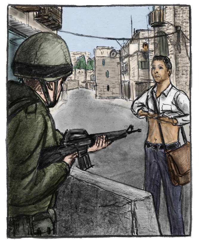 Jews are welcome in Hebron, he stresses, but not if they make life impossible for the Palestinians. “In this neighborhood the occupation has lead to the closure of more than eighteen hundred shops and the vacancy of about a thousand homes. While settlers can go anywhere they wish, Palestinians may only walk as far as my house. If I want to leave my home, I have to pass through a checkpoint guarded by aggressive soldiers, who might shoot you if you get too close. Even ambulances are routinely denied access to the street, so pregnant women have had to give birth at the checkpoint. They make it unbearable for us here, in the hope that we will leave.”