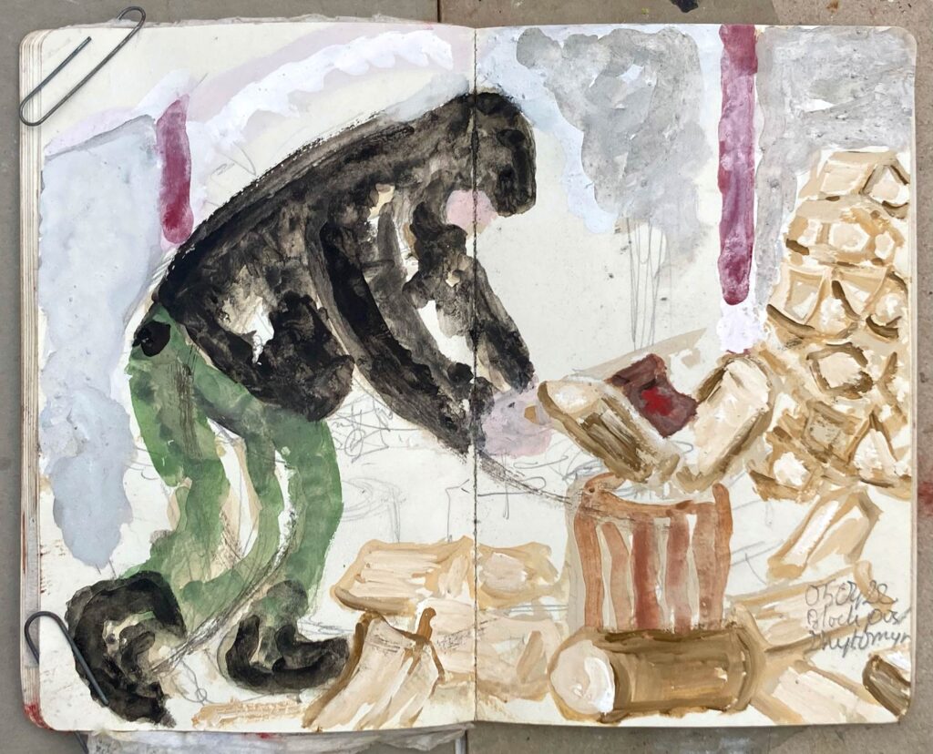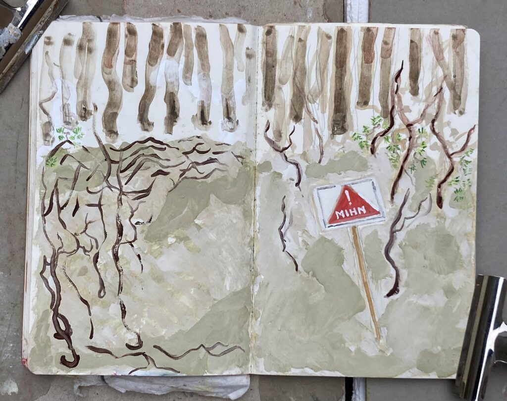 The documentary maker inside me wakes up. I know I want to go there, see with my own eyes. I have some experience. I have been to war zones before. In Afghanistan, Somalia, former Yougaslavia, Sierra Leone. As I am now a painter, I will go with my sketchbook, and paint.