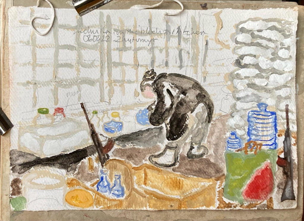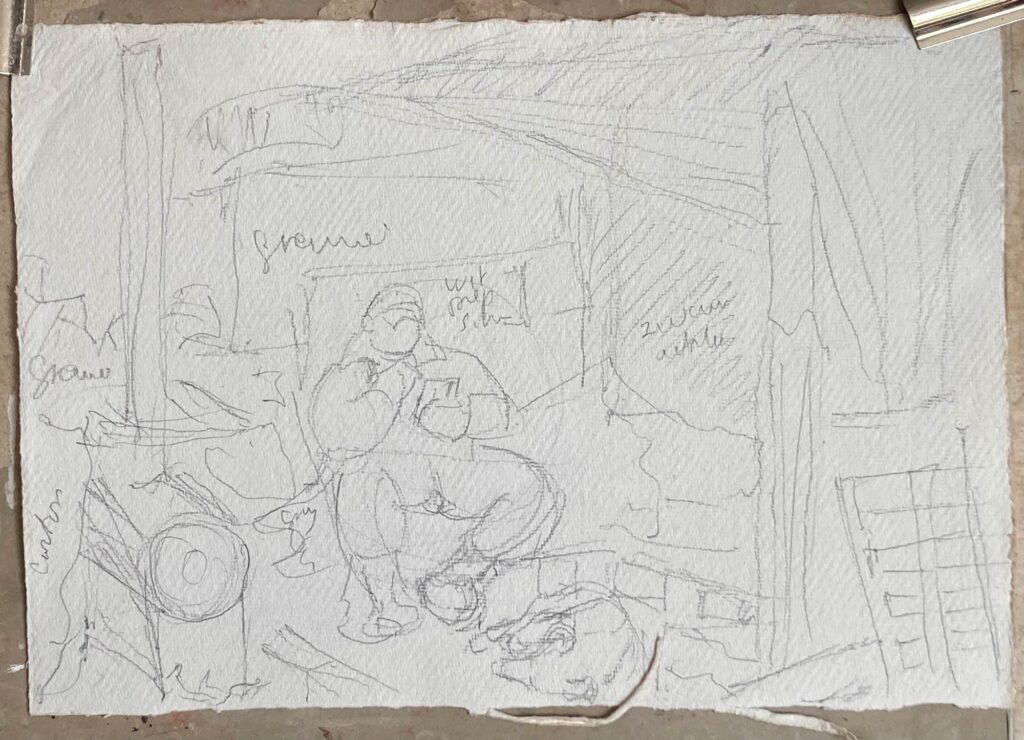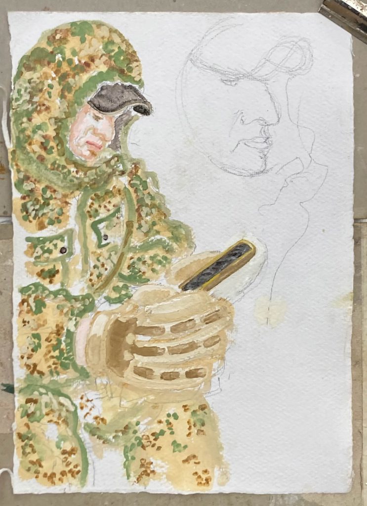 110422 I add two unfinished drawings to my report. This is Dima on guard. Nothing much is happening today.