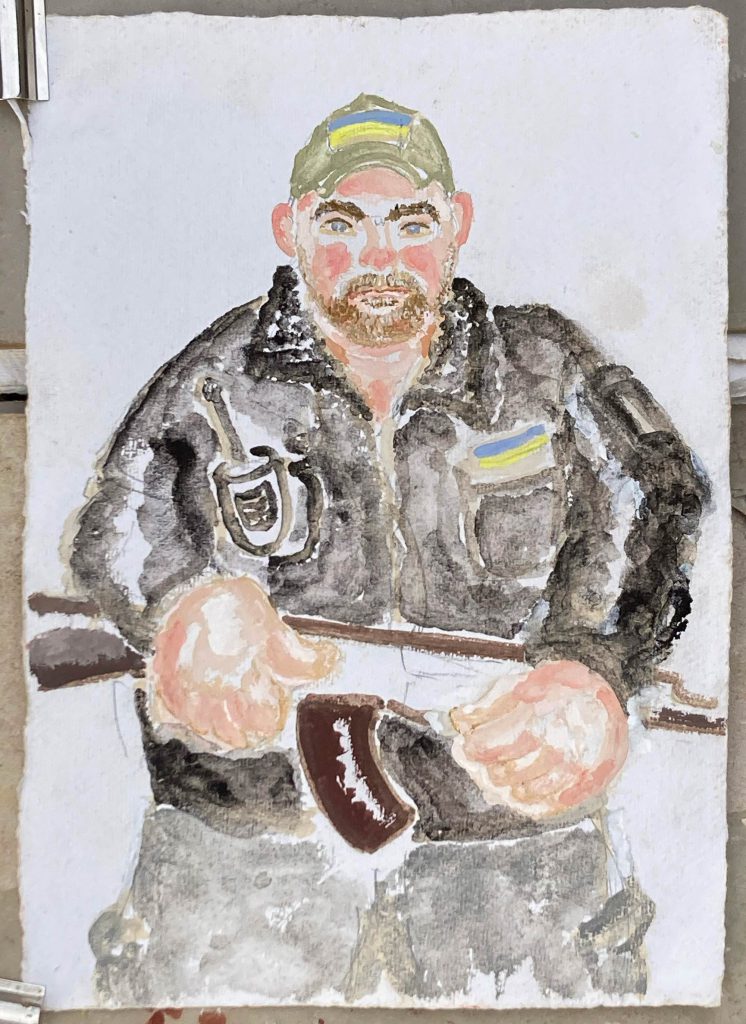 Before the invasion, he had a job in security. ‘I right for freedom’, he says. He is determined to resist the Russians till he can wave the Ukrainian flag on the the Red Square.