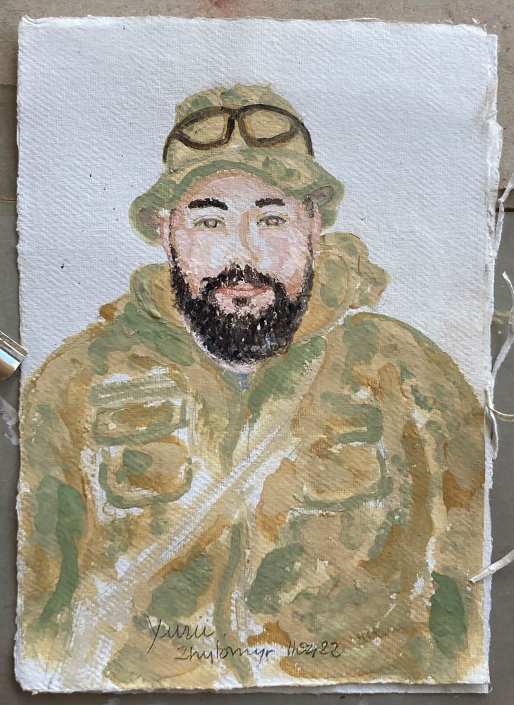Yurii: ‘I am now invalid, a fisherman and a father. I do not regret joining the army. I was born here in this time and place to do what I did. I would do it again. As a sniper you do not shoot the human, you shoot a military target, to defend your country that is attacked. My twins were born in November 2021, five months before the invasion. A boy and a girl. We decided to stay here as a family. We are okay.’