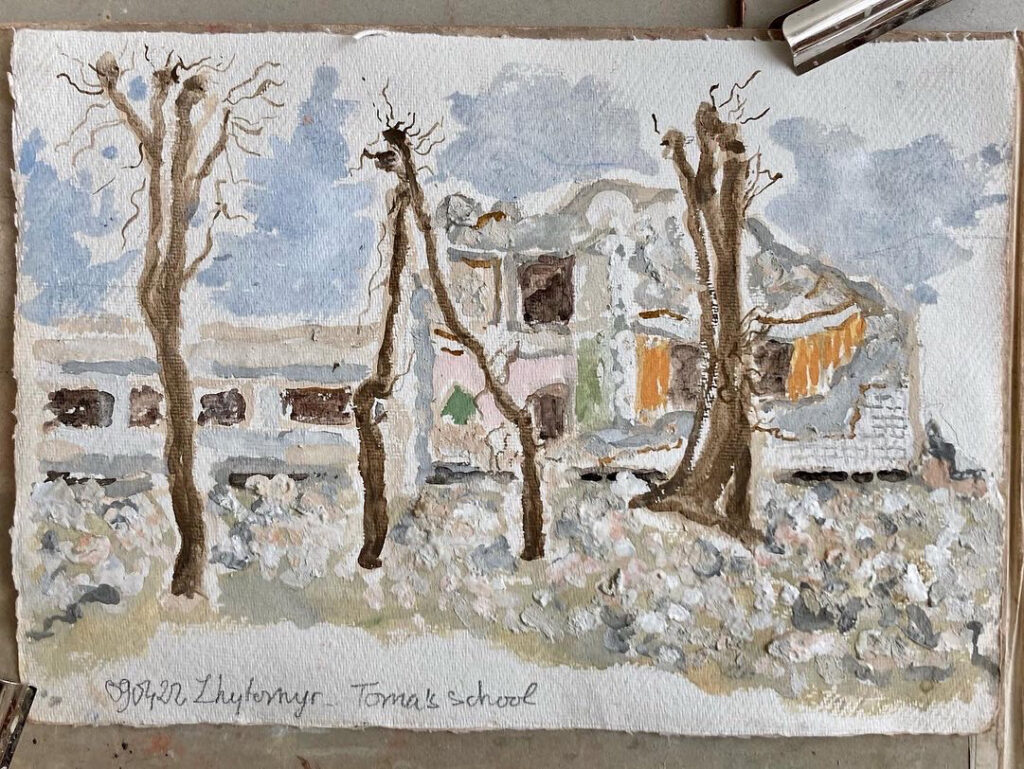 Above, what remains of Tamara’s school in the centre of Zhytomyr, which was bombed by the Russians.