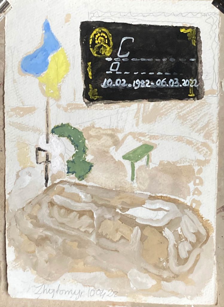 I drive by a cemetery close by. I see a Ukrainian flag next to a fresh grave. The flags are placed at the graves in honour of those who died for their homeland in the war. Out of piety for the deceased, I do not mention the name, but read the dates.