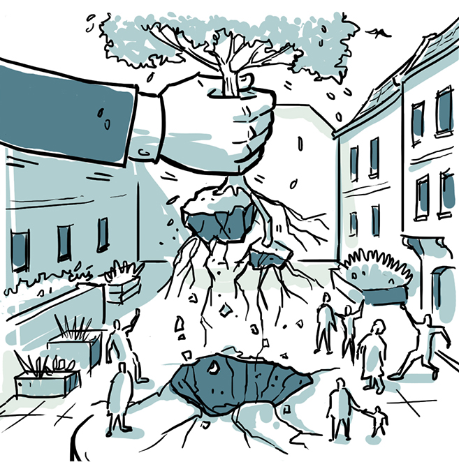 original Judith Vanistendael Window Comic – Brussels The tree in my garden, or the wisdom of plants Climate Change Environment Health Reportage special#13