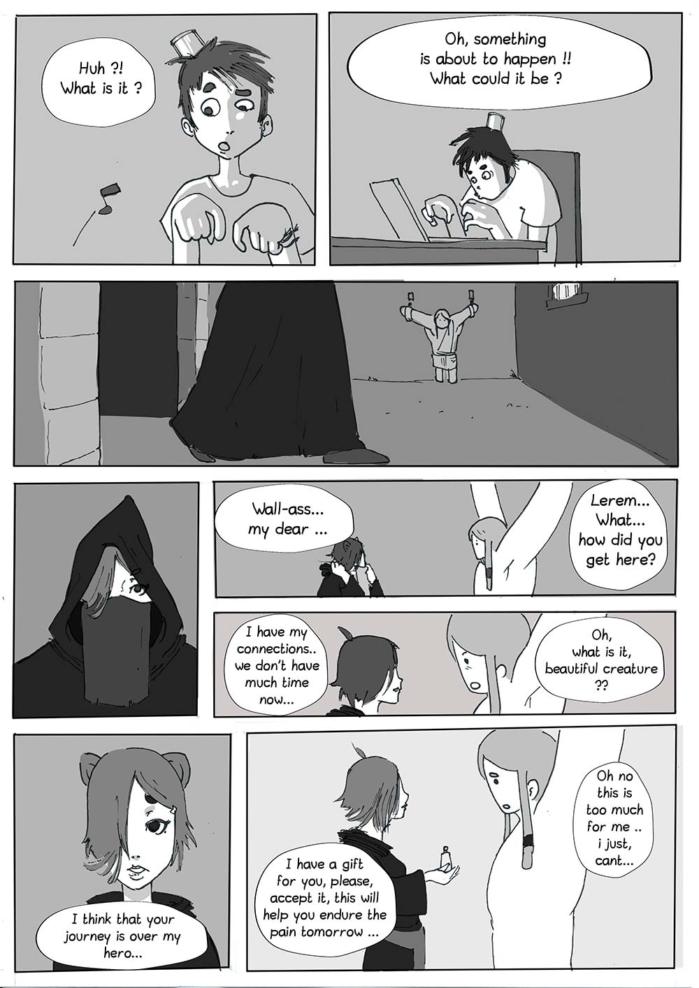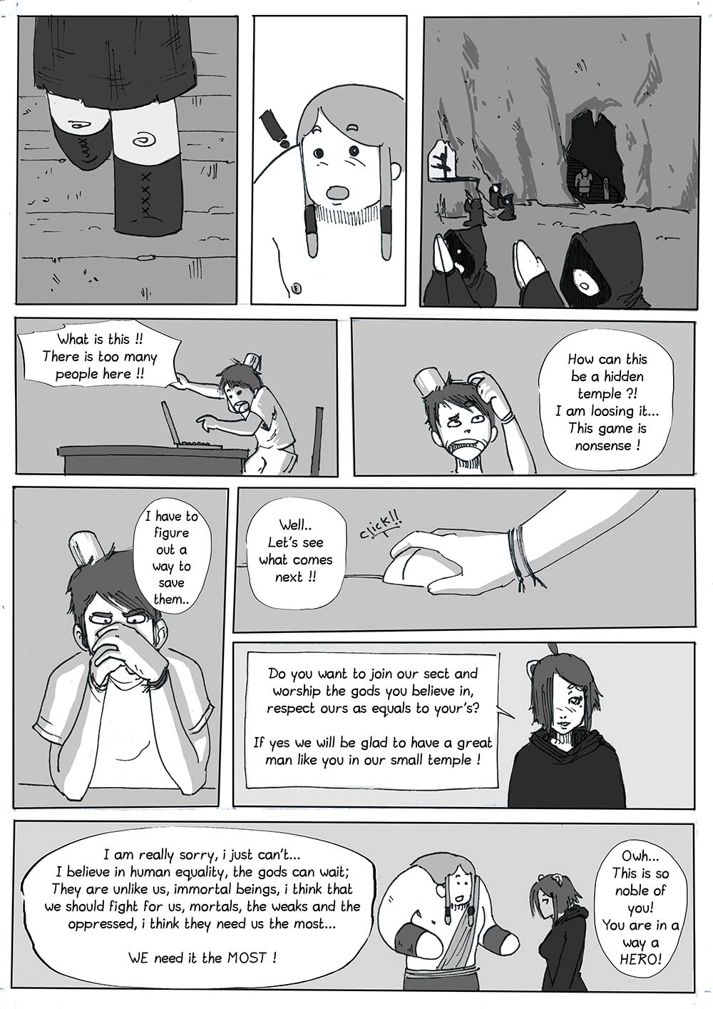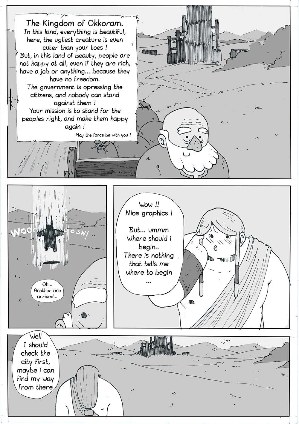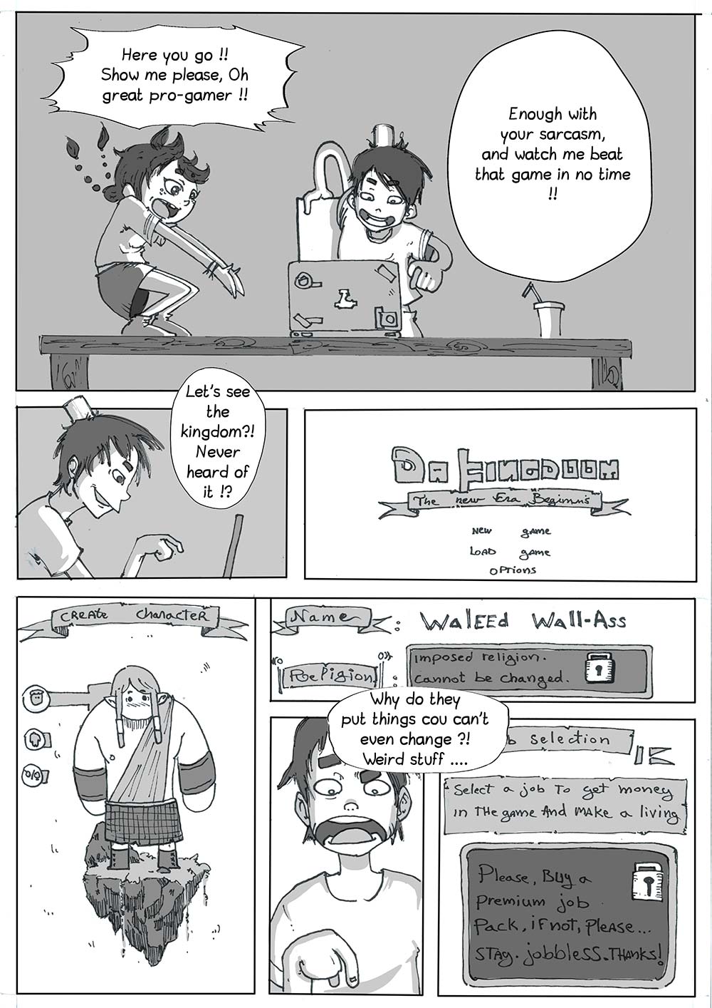 The protagonist in C.M. Shergath's comic plays a novel videogame, 'the Happy Kingdom'. What starts out as an innocent enough fairy tale quest leads him through several stages of injustice, rebellion and persecution.