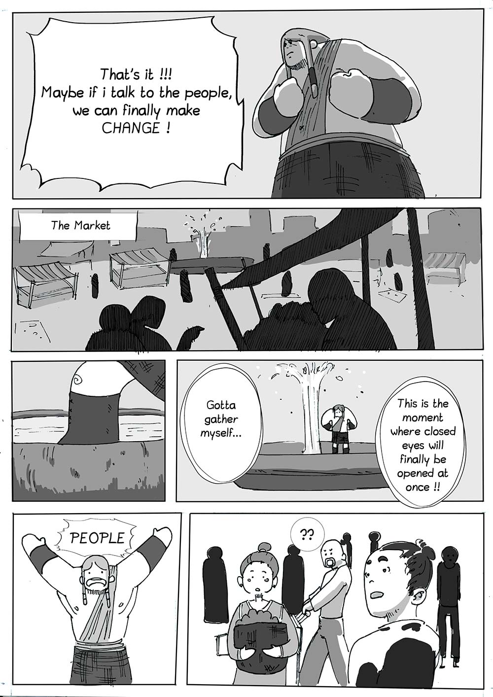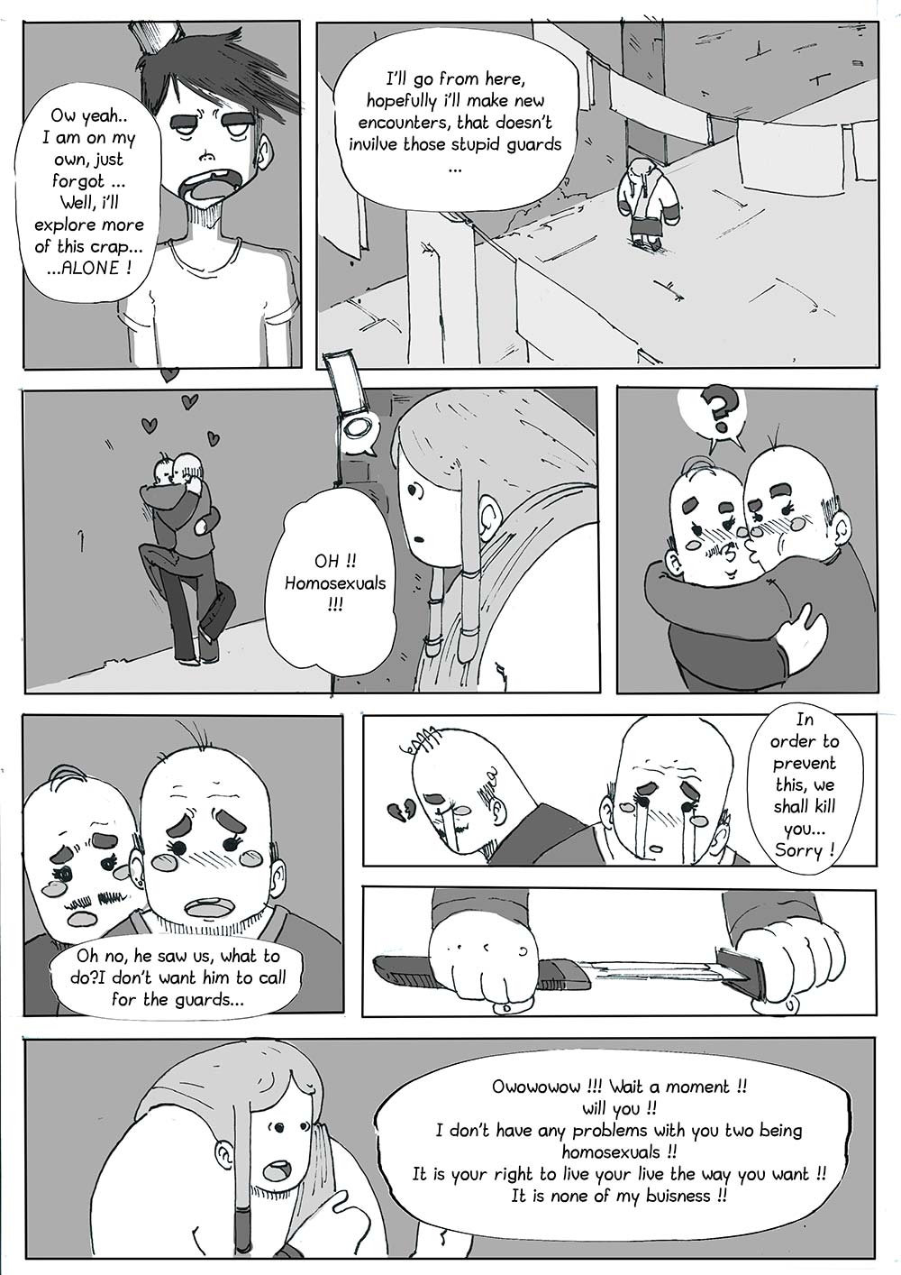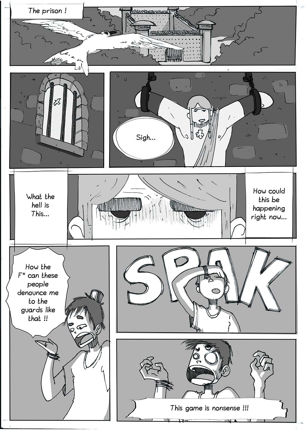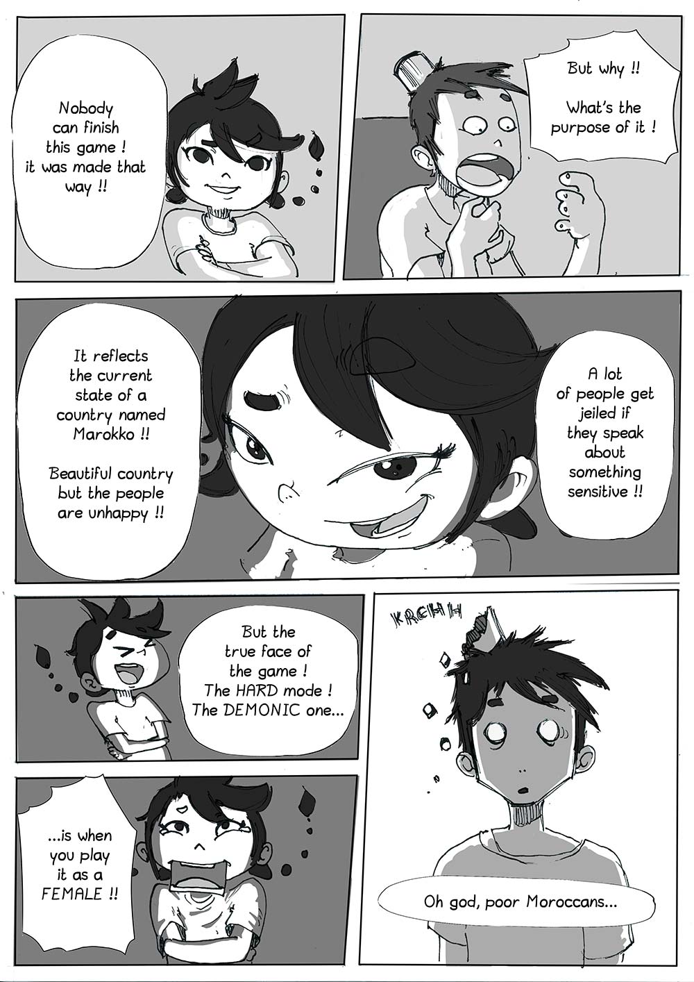 The protagonist in C.M. Shergath's comic plays a novel videogame, 'the Happy Kingdom'. What starts out as an innocent enough fairy tale quest leads him through several stages of injustice, rebellion and persecution.