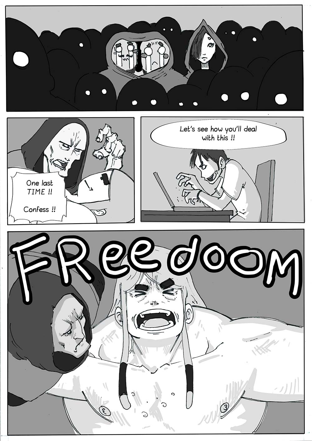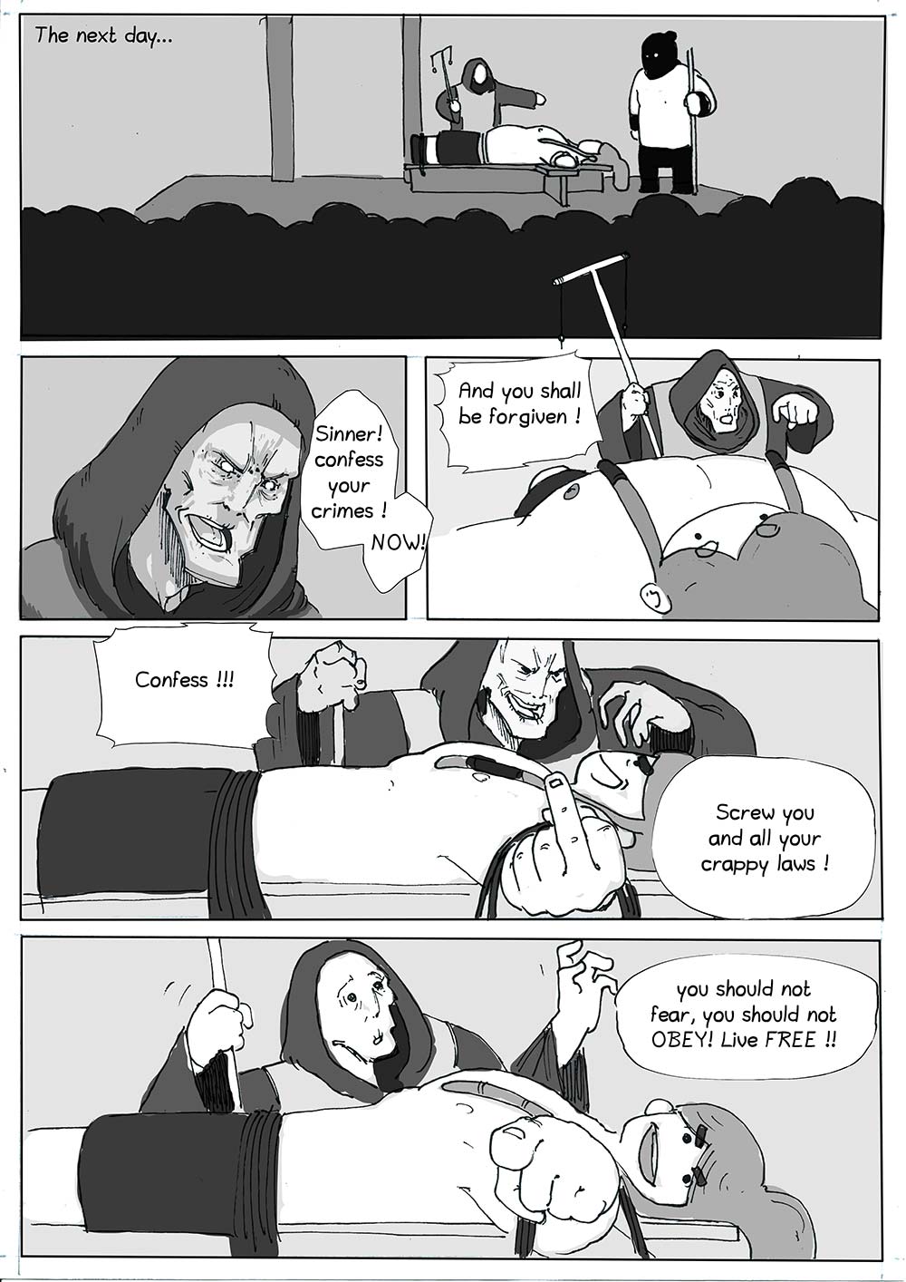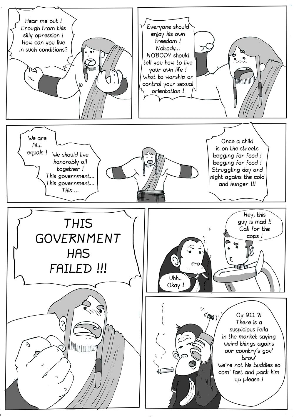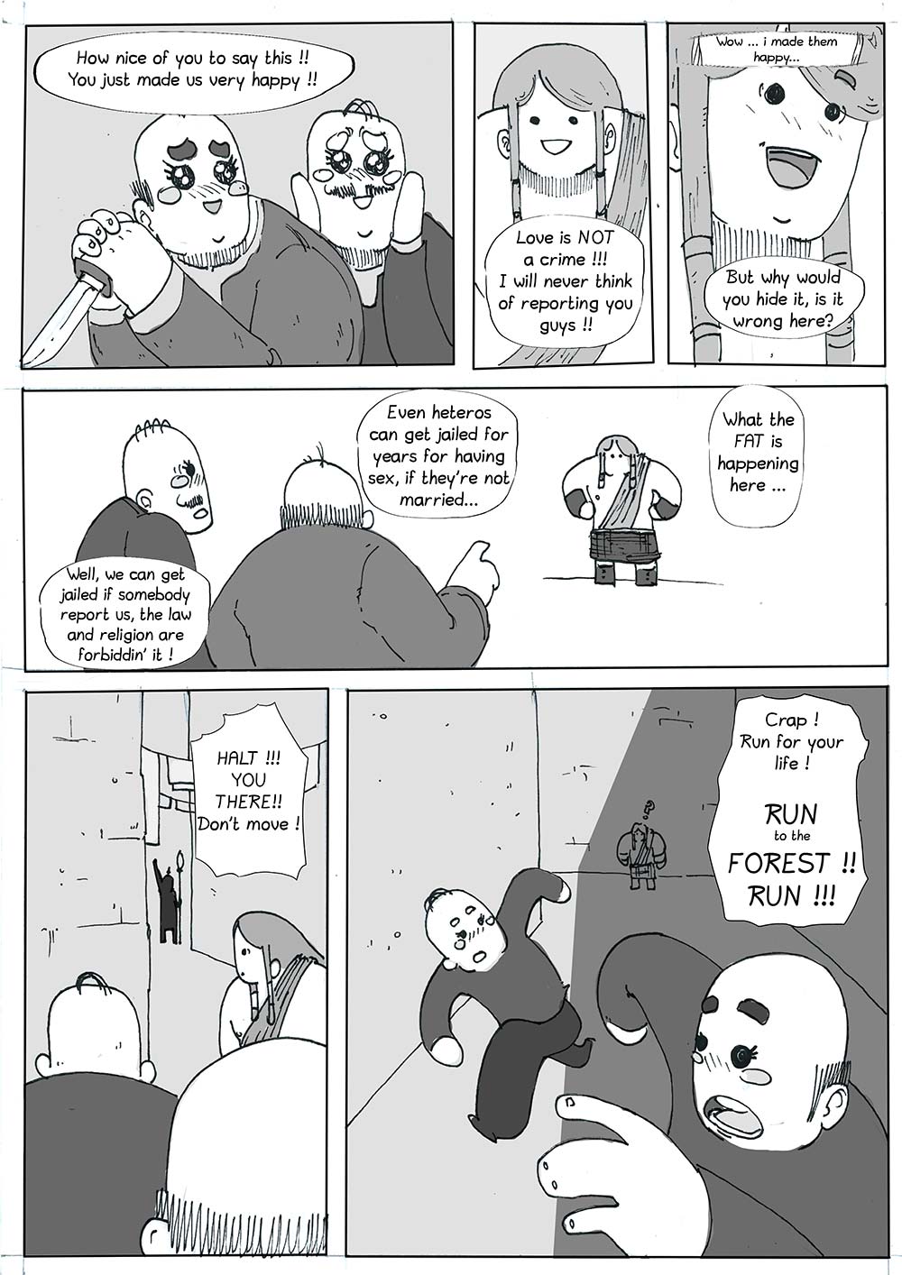 The protagonist in C.M. Shergath's comic plays a novel videogame, 'the Happy Kingdom'. What starts out as an innocent enough fairy tale quest leads him through several stages of injustice, rebellion and persecution.