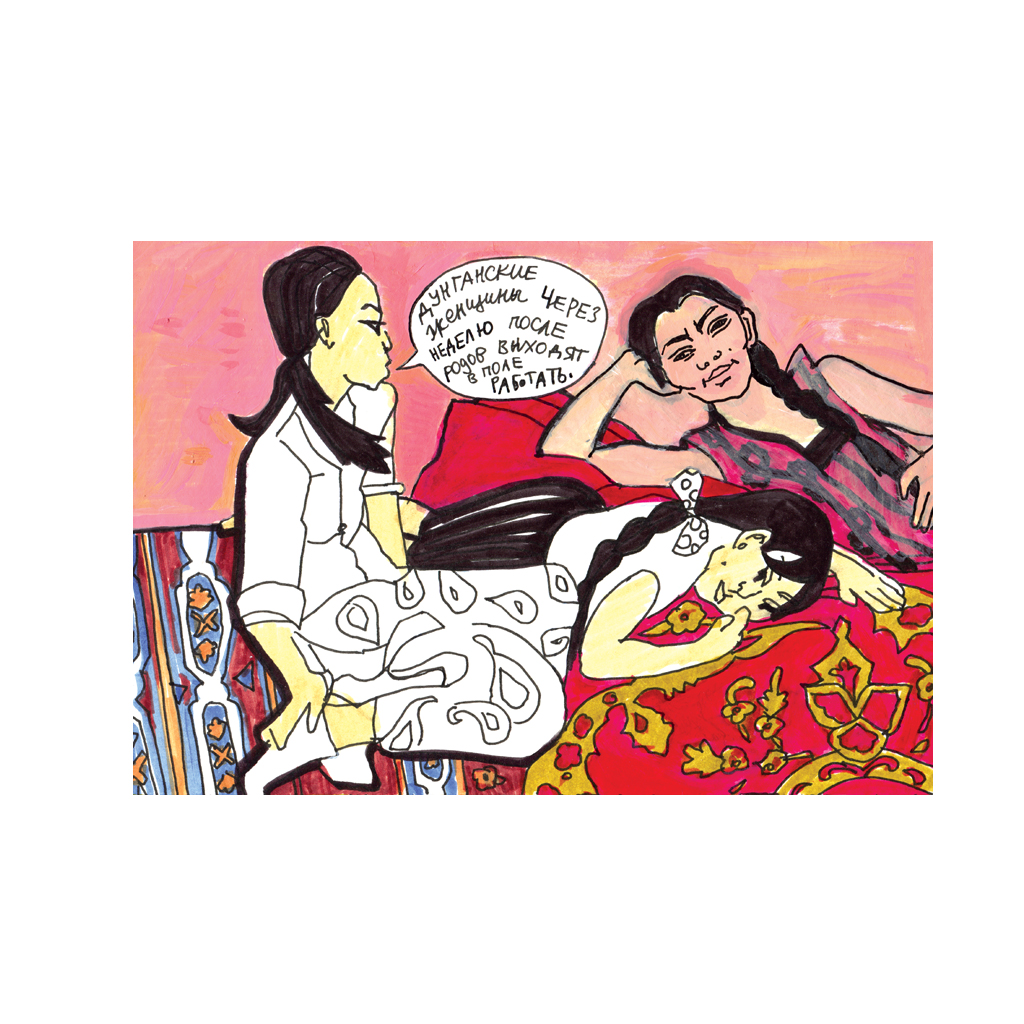 A Trip to Kyrgystan is the first in a series of graphic reportages that Russian graphic journalist and activist Victoria Lomasko is making of her visits to former Soviet republics and remote parts of Russia. The main topics of the series are gender problems, local activism and protest movements, the ways civil society is formed, the vicissitudes of the Soviet legacy, and international relationships. You can read the whole story in English in Context