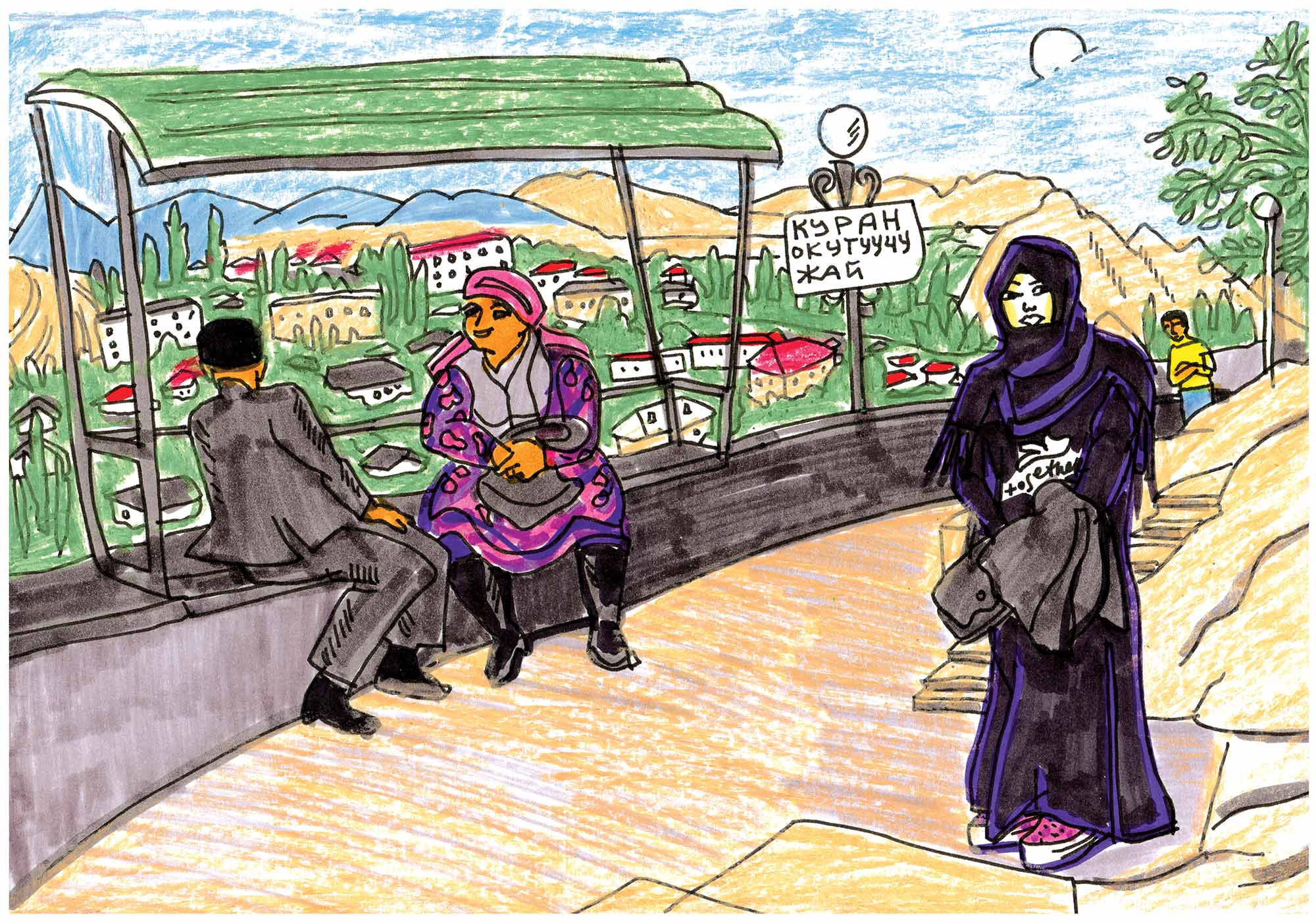 A Trip to Osh is a preview of Victoria Lomasko's coming book "The Last Soviet Artist" in which she will publish several reportages she made of trips to former Soviet Republics (some of them are also published on Drawing the Times). Educated as an artist during the Soviet era, she uses the Soviet modernist style in the reportages, and calls her self ironically 'The Last Soviet Artist". Gradually her nostalgia for the Sovjet past faded away and she is now welcoming everything new. In the last years, before the corona crisis prevented her from travelling, she travelled many places in Europe and the United States where she exhibited her work and made large murals. Osh is the second important city in the former Soviet republic of Kyrgystan. She observed how Kyrzyg and Uzbek people live together, despite the cultural differences. You can read the whole story here