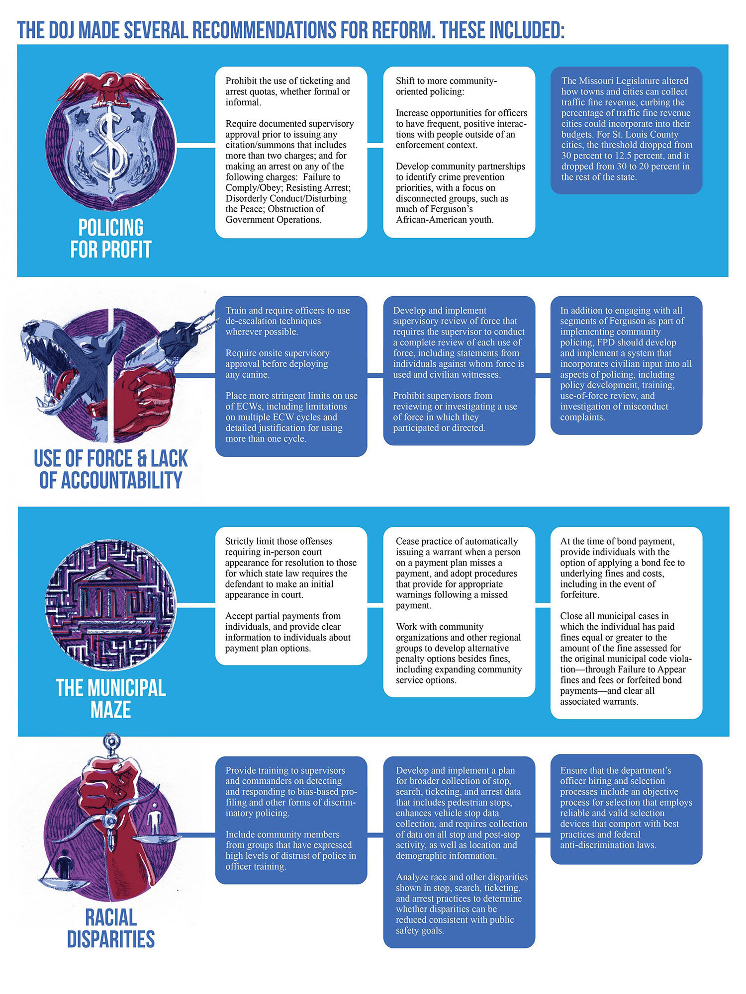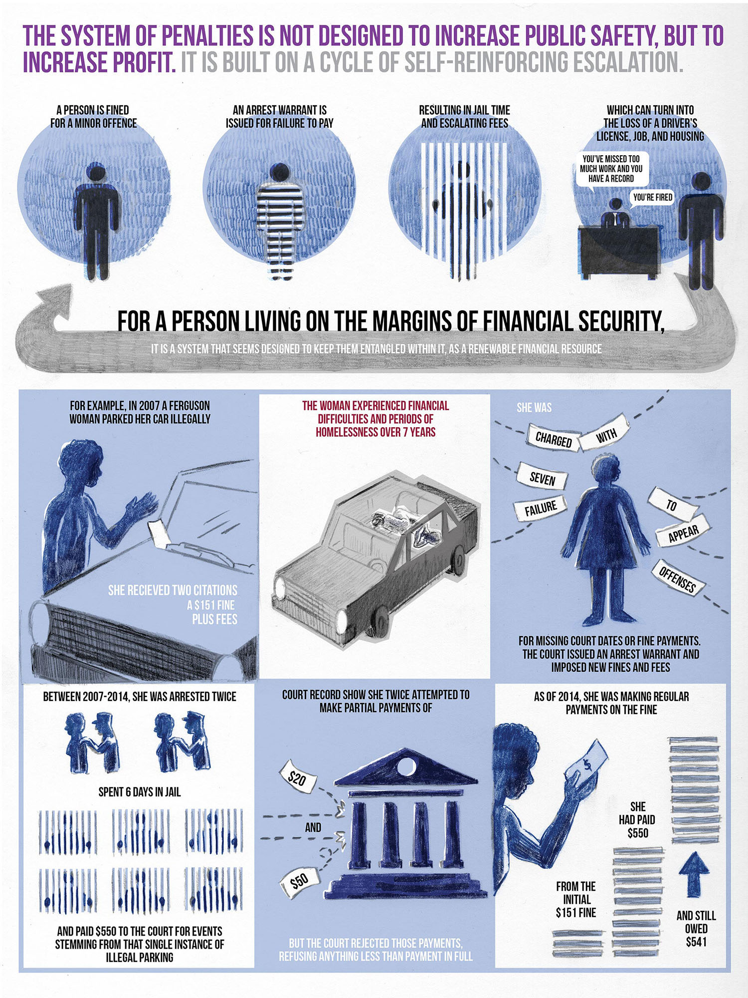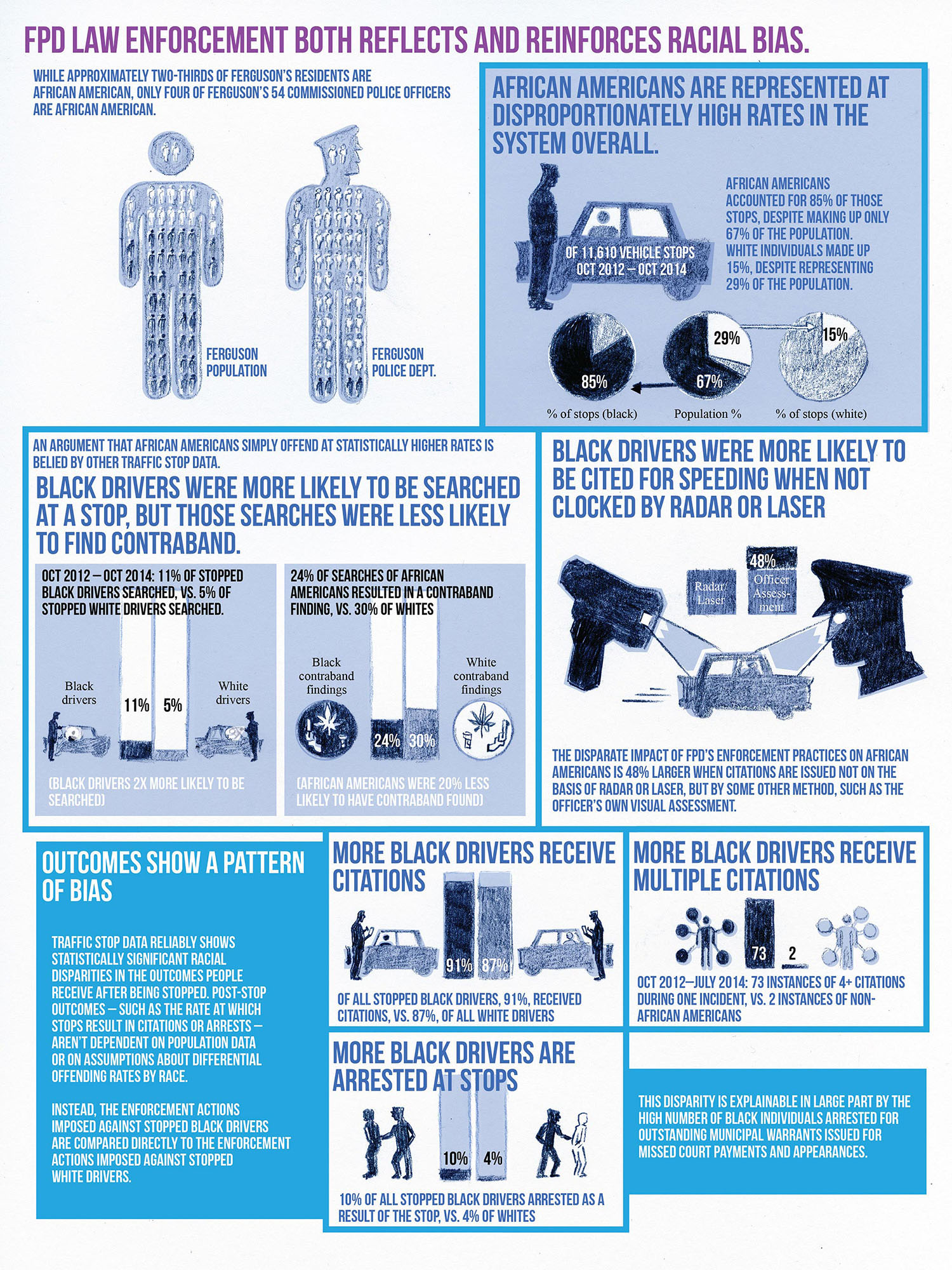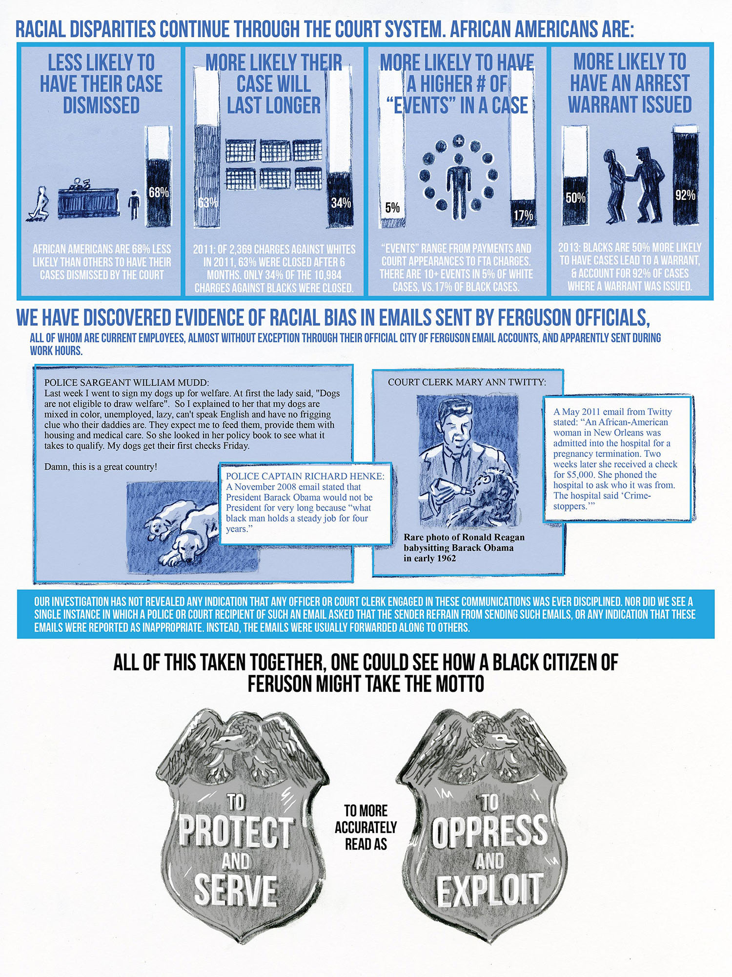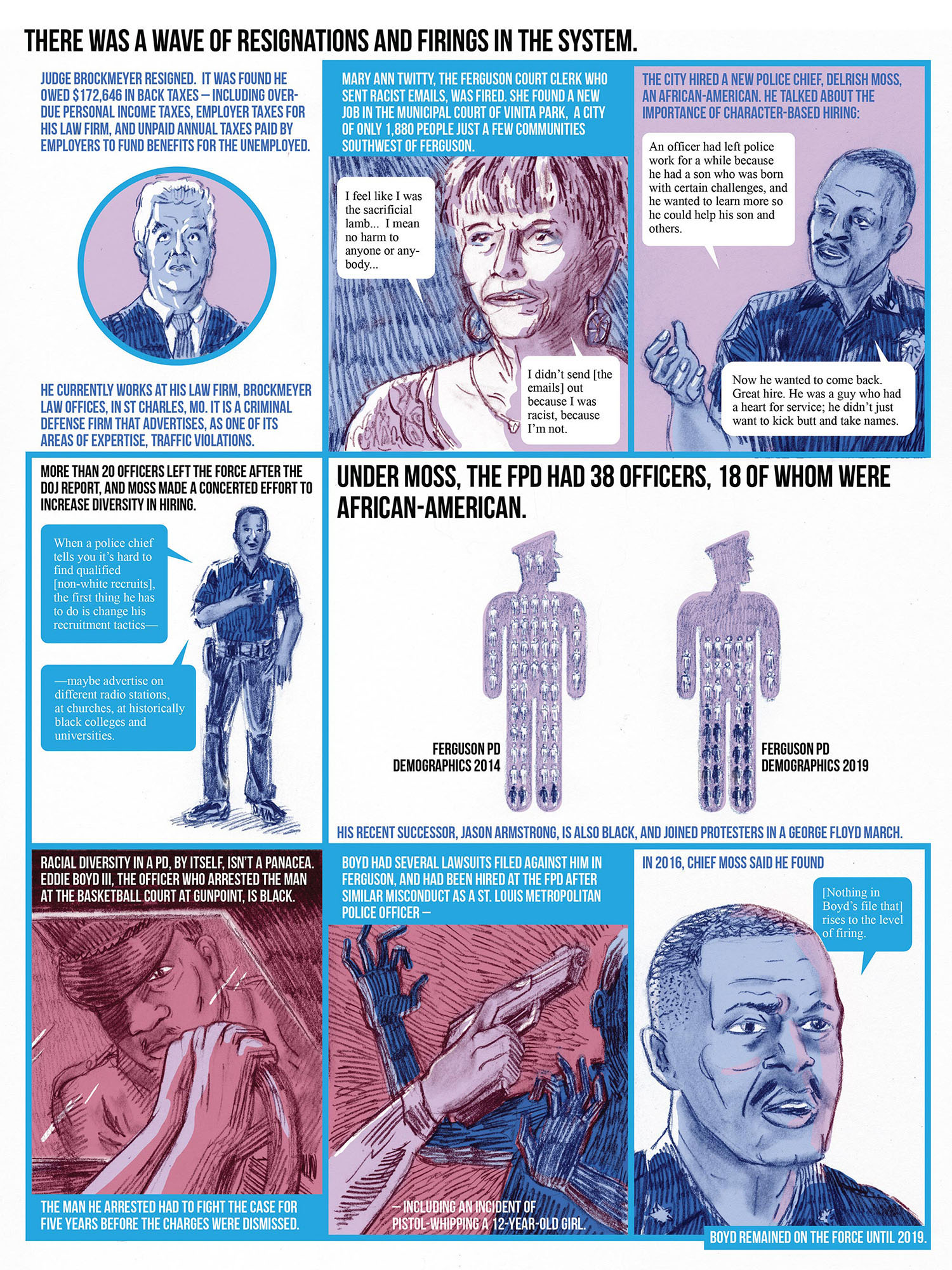 A longstanding defense of American policing is that, when an officer is caught abusing their power, it can be explained away as the problem of "one bad apple" – in other words, it's the fault of an individual corrupt officer. The investigation of the Ferguson, Missouri Police Department, conducted by the Department of Justice (DOJ) after the fatal police shooting of 18-year-old Michael Brown, painted a very different picture. The DOJ report revealed, in painstaking detail, the way policies and procedures in the department created racist outcomes and abuses of power. It's a microcosm of the way policing can go wrong, from the criminalization of poverty to the unchecked use of excessive force. Chris Lanier created this comic adaptation of the Ferguson DOJ report in an attempt to make the idea of "institutional racism" both concrete and accessible. It also illustrates how the report was used in Ferguson over the past six years – reviewing the successes and failures of the movement for change. In that story are lessons and cautionary tales for the current movement for police reform in the US, spurred by the on-camera police killing of George Floyd in Minneapolis, Minnesota. This comic can be downloaded as a single, multi-page PDF at this link. A bibliography of linked sources for the comic can be downloaded here.