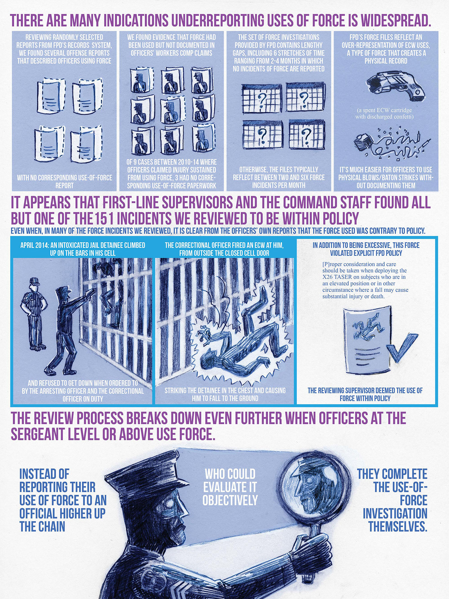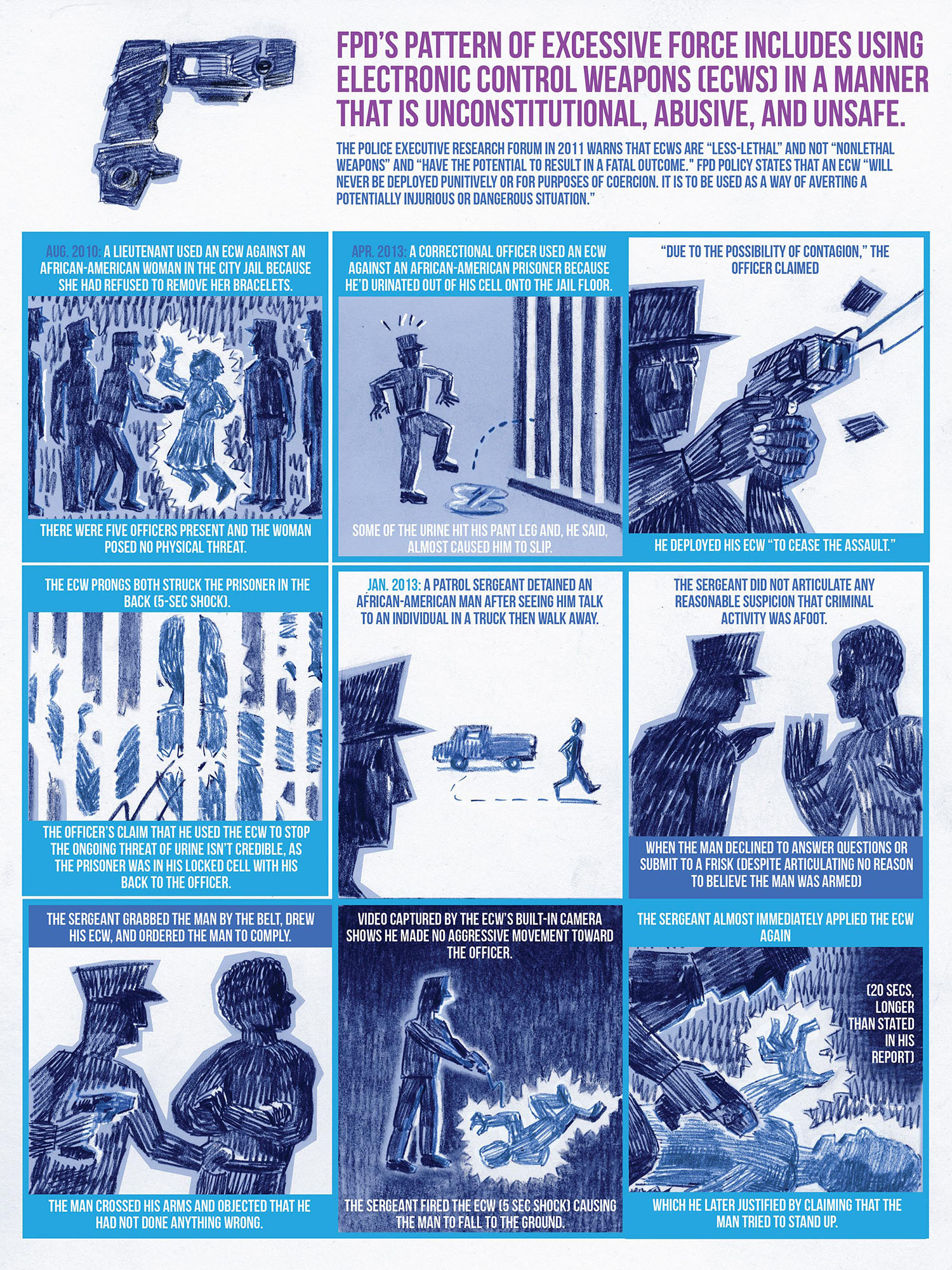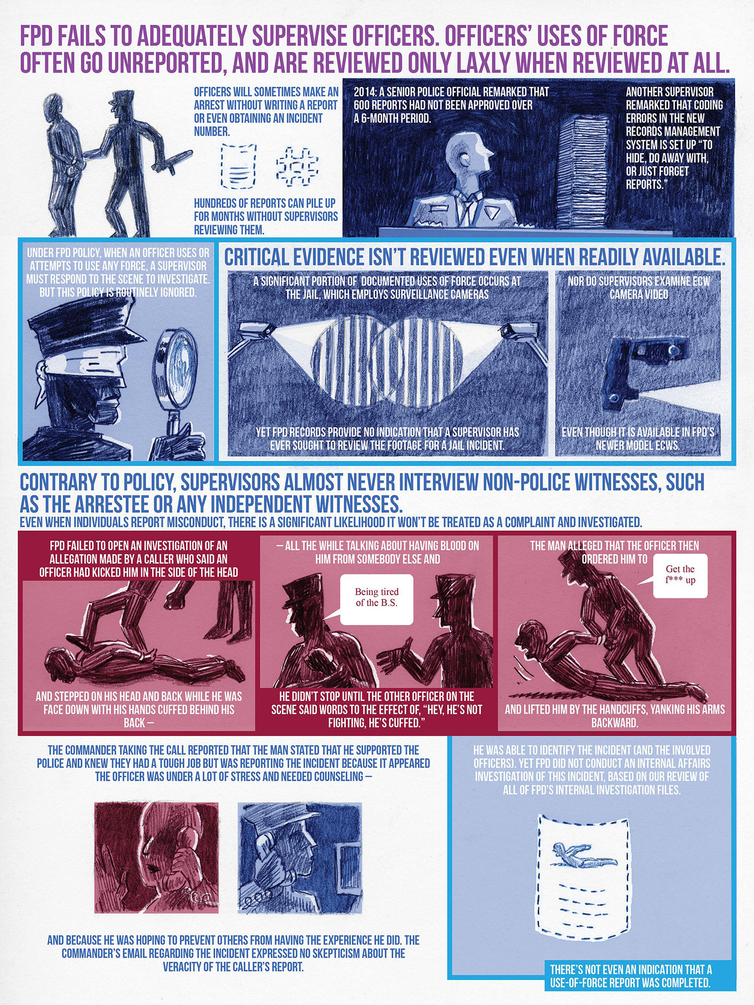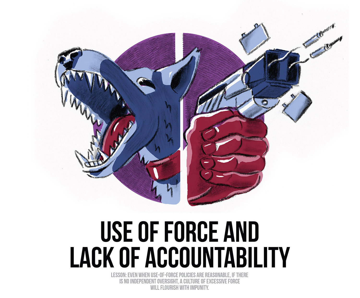 A longstanding defense of American policing is that, when an officer is caught abusing their power, it can be explained away as the problem of "one bad apple" – in other words, it's the fault of an individual corrupt officer. The investigation of the Ferguson, Missouri Police Department, conducted by the Department of Justice (DOJ) after the fatal police shooting of 18-year-old Michael Brown, painted a very different picture. The DOJ report revealed, in painstaking detail, the way policies and procedures in the department created racist outcomes and abuses of power. It's a microcosm of the way policing can go wrong, from the criminalization of poverty to the unchecked use of excessive force. Chris Lanier created this comic adaptation of the Ferguson DOJ report in an attempt to make the idea of "institutional racism" both concrete and accessible. It also illustrates how the report was used in Ferguson over the past six years – reviewing the successes and failures of the movement for change. In that story are lessons and cautionary tales for the current movement for police reform in the US, spurred by the on-camera police killing of George Floyd in Minneapolis, Minnesota. This comic can be downloaded as a single, multi-page PDF at this link. A bibliography of linked sources for the comic can be downloaded here.