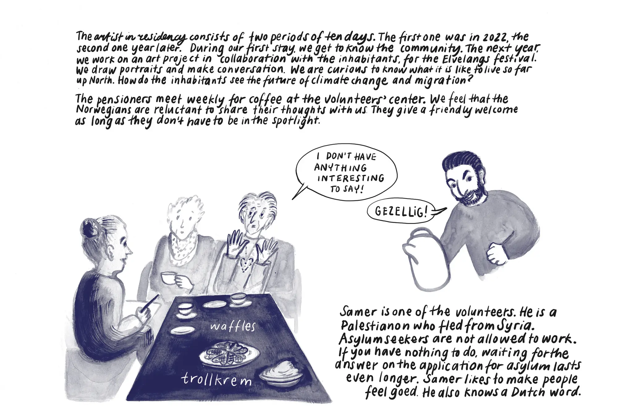 On June 9, people in the EU voted for the parliament and the outcome was less radical than expected, but still many Europeans voted for the far right, populist parties. One of the main reasons that people vote for these parties, is that they are worried about migration, worried that immigrants and refugees will take away their jobs and houses. Or is it fear for the unknown? But what if we will have to migrate ourselves, because the sea level is rising so much that our countries will flood? Judith Vanistendael and Eva Hilhorst traveled to Melbu in the North of Norway, a town that hosts around 200 asylum seekers to find out what it is like to live so far from home and how these strangers integrate in society. In this reportage you can read what they learned from the people in Melbu. This reportage was originally made in Dutch for Belgian Apache magazine #14