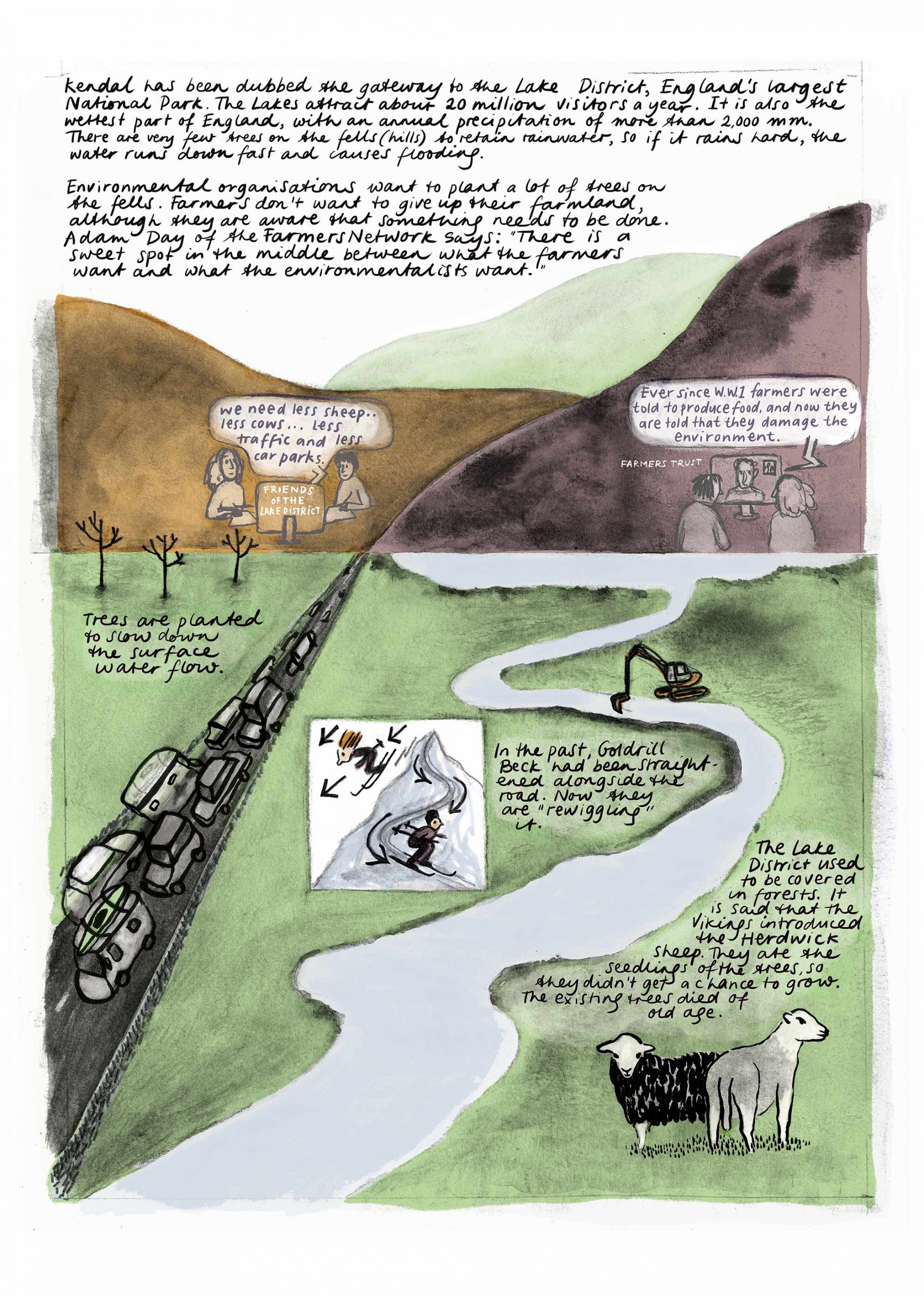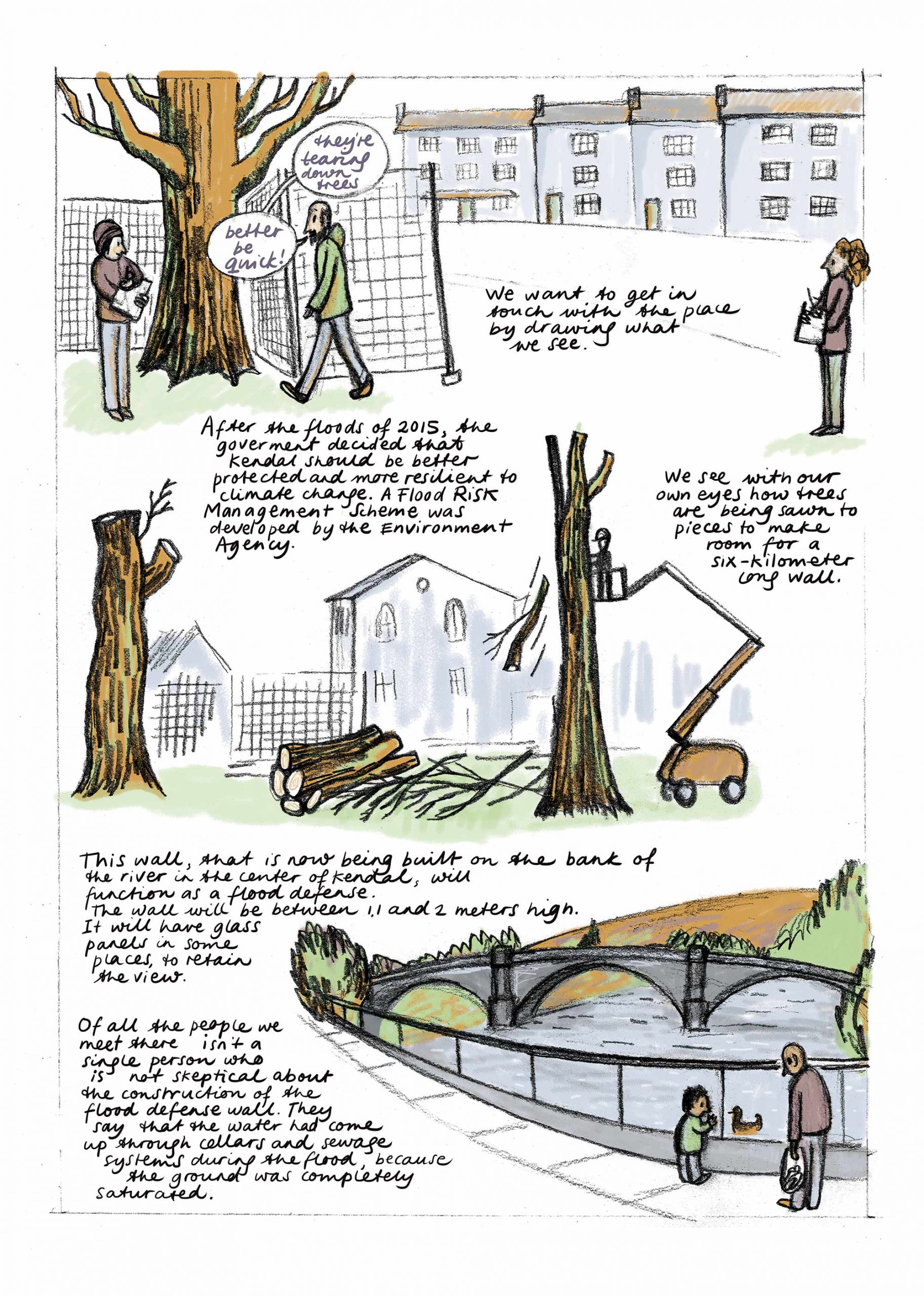In March 2022 graphic storytellers Eva Hilhorst and Judith Vanistendael went to Kendal in England to find out how people had experienced the floods of 2015 and how they could convey these stories with comics and drawings. In this graphic reportage you can read and see what they encountered.