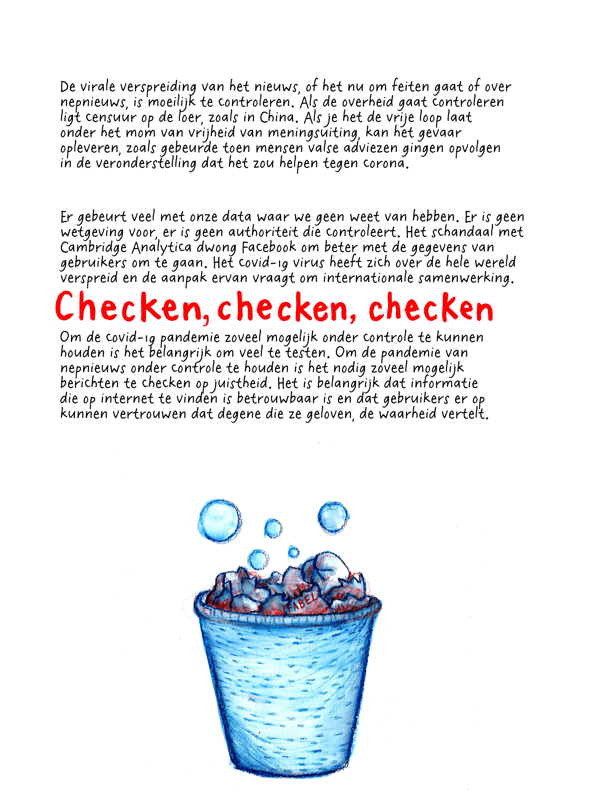 Omdat we er middenin zitten is het onmogelijk om met dit verhaal het laatste nieuws te brengen. De COVID-19 pandemie is voorlopig nog niet uitgewoed, de infodemie van nepnieuws is dat nog lang niet. In dit verhaal hebben social media een belangrijke rol. Hun invloed blijkt steeds belangrijker te zijn in maatschappelijk en politiek opzicht. Hoe verhouden de social media-bedrijven als Facebook en Twitter zich hiertoe? De documentaire The Great Hack, die te zien is op Netflix, doet een boekje open over het Cambridge Analytica schandaal. Over Bellingcat is een documentaire te zien op 2Doc: Bellingcat - Thruth in a Post-Truth World. Daarnaast zijn de uitzendingen en meet-ups van VPRO's Tegenlicht een aanrader voor wie meer over het onderwerp wil weten.