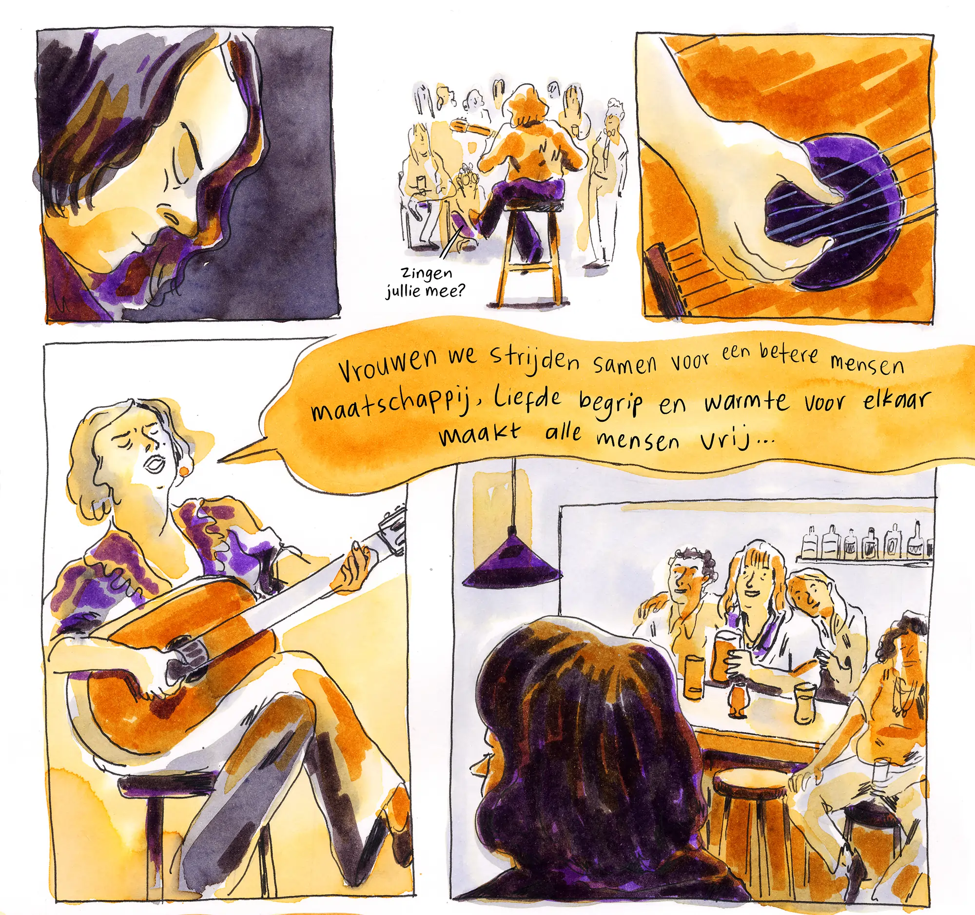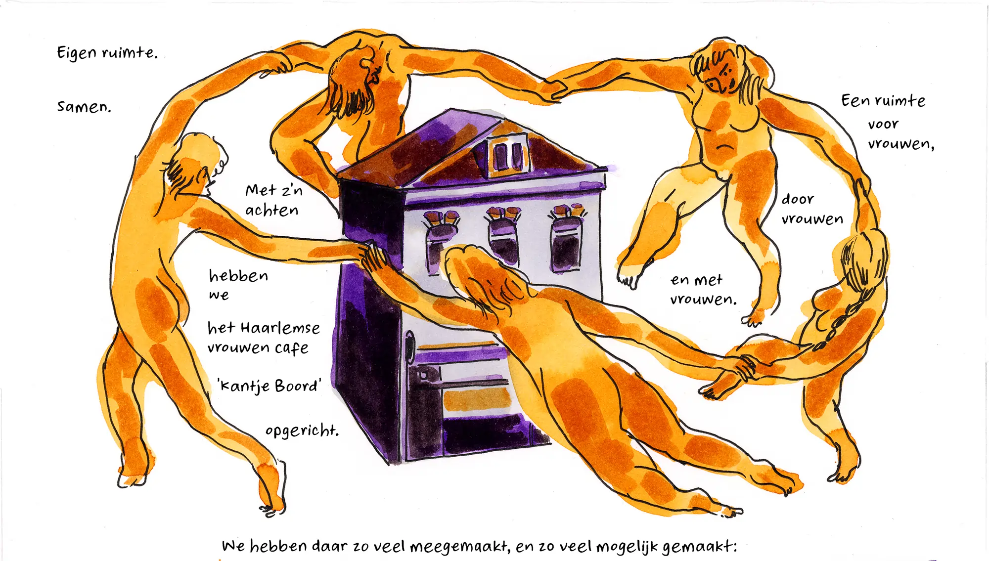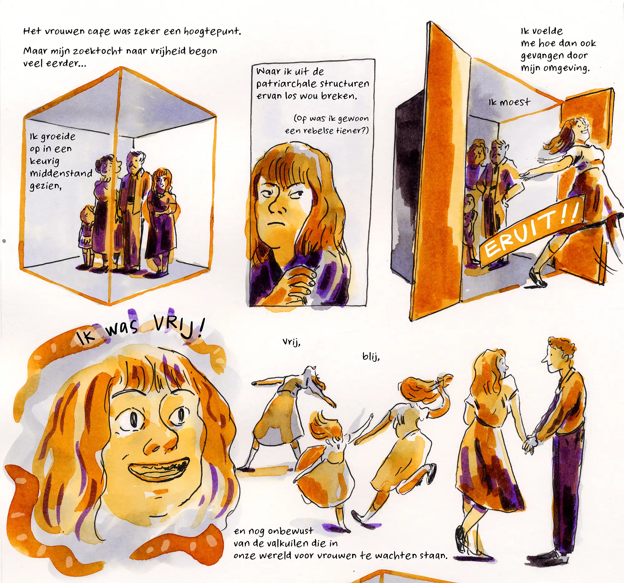 Voor het project Drawn to Freedom, dat tijdens de Stripdagen Haarlem werd georganiseerd in het kader van 80 jaar vrijheid ging B. Carrot in gesprek met Marni Blom. Zij runde samen met Renie Limonard van 1984 tot 1992 het vrouwencafé Kantje Boord, later De Ladies. Dit café werd voor vrouwen een veilige plek om andere vrouwen te ontmoeten. In de jaren tachtig waren cafés vooral plekken voor mannen en vrouwen werden er vaak lastiggevallen. In het vrouwencafé werden veel vrouwen zich bewust van de positie van vrouwen in de maatschappij.