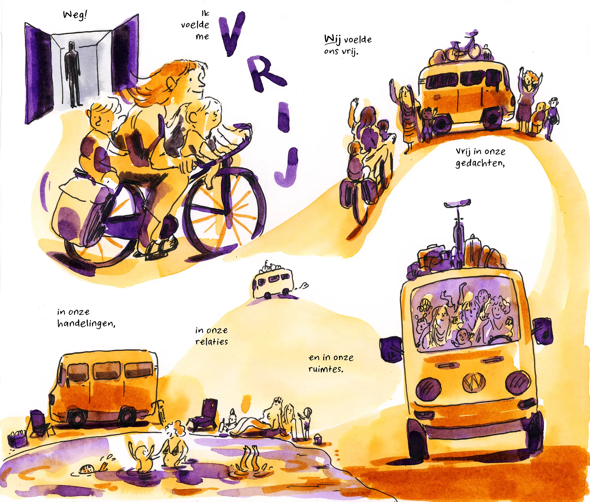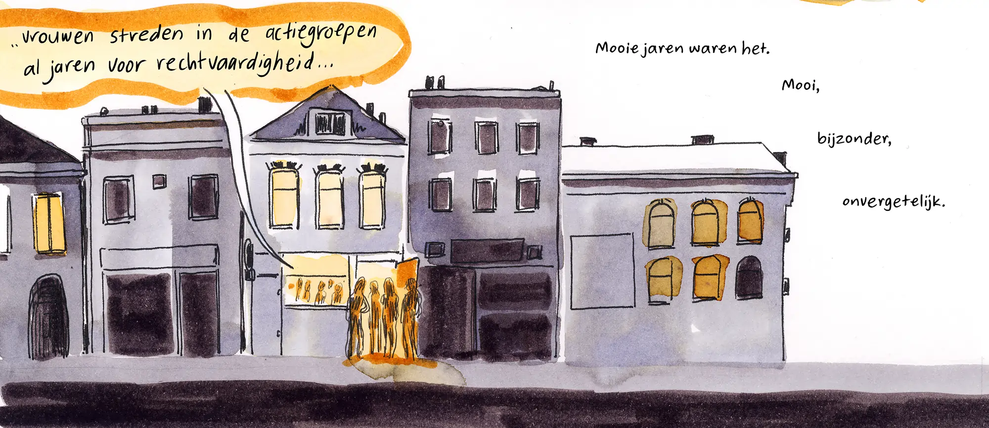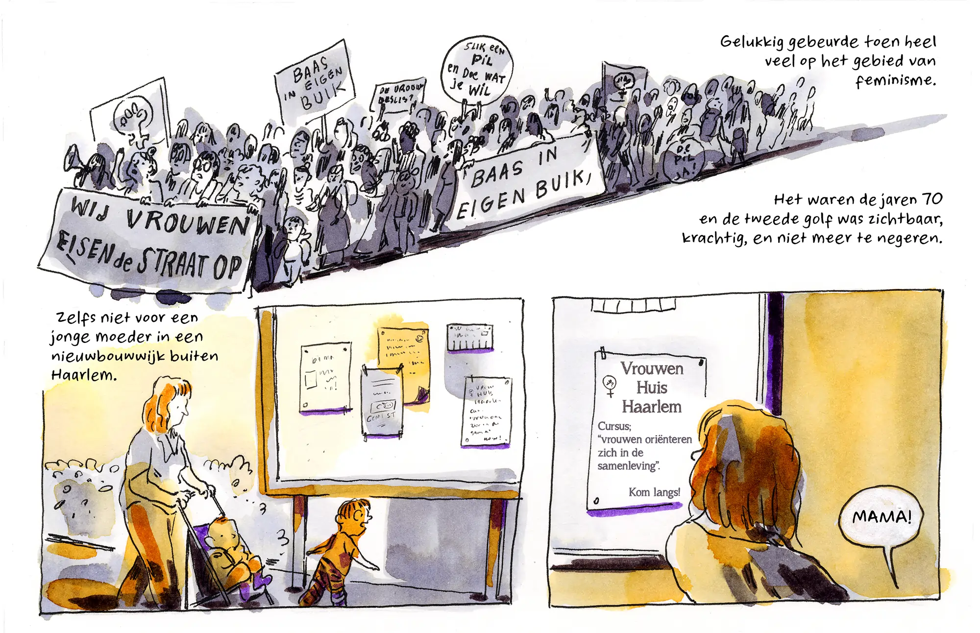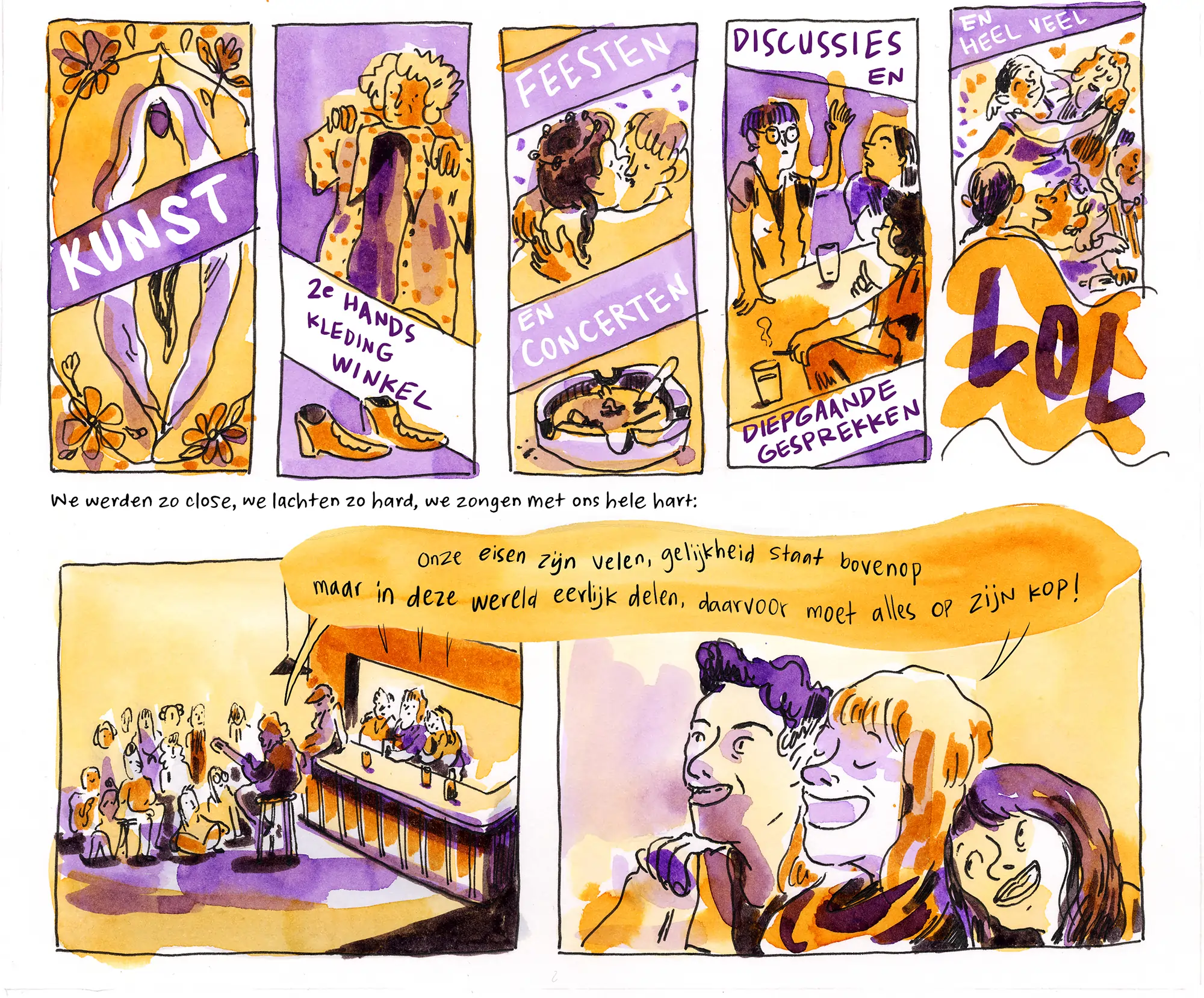 Voor het project Drawn to Freedom, dat tijdens de Stripdagen Haarlem werd georganiseerd in het kader van 80 jaar vrijheid ging B. Carrot in gesprek met Marni Blom. Zij runde samen met Renie Limonard van 1984 tot 1992 het vrouwencafé Kantje Boord, later De Ladies. Dit café werd voor vrouwen een veilige plek om andere vrouwen te ontmoeten. In de jaren tachtig waren cafés vooral plekken voor mannen en vrouwen werden er vaak lastiggevallen. In het vrouwencafé werden veel vrouwen zich bewust van de positie van vrouwen in de maatschappij.