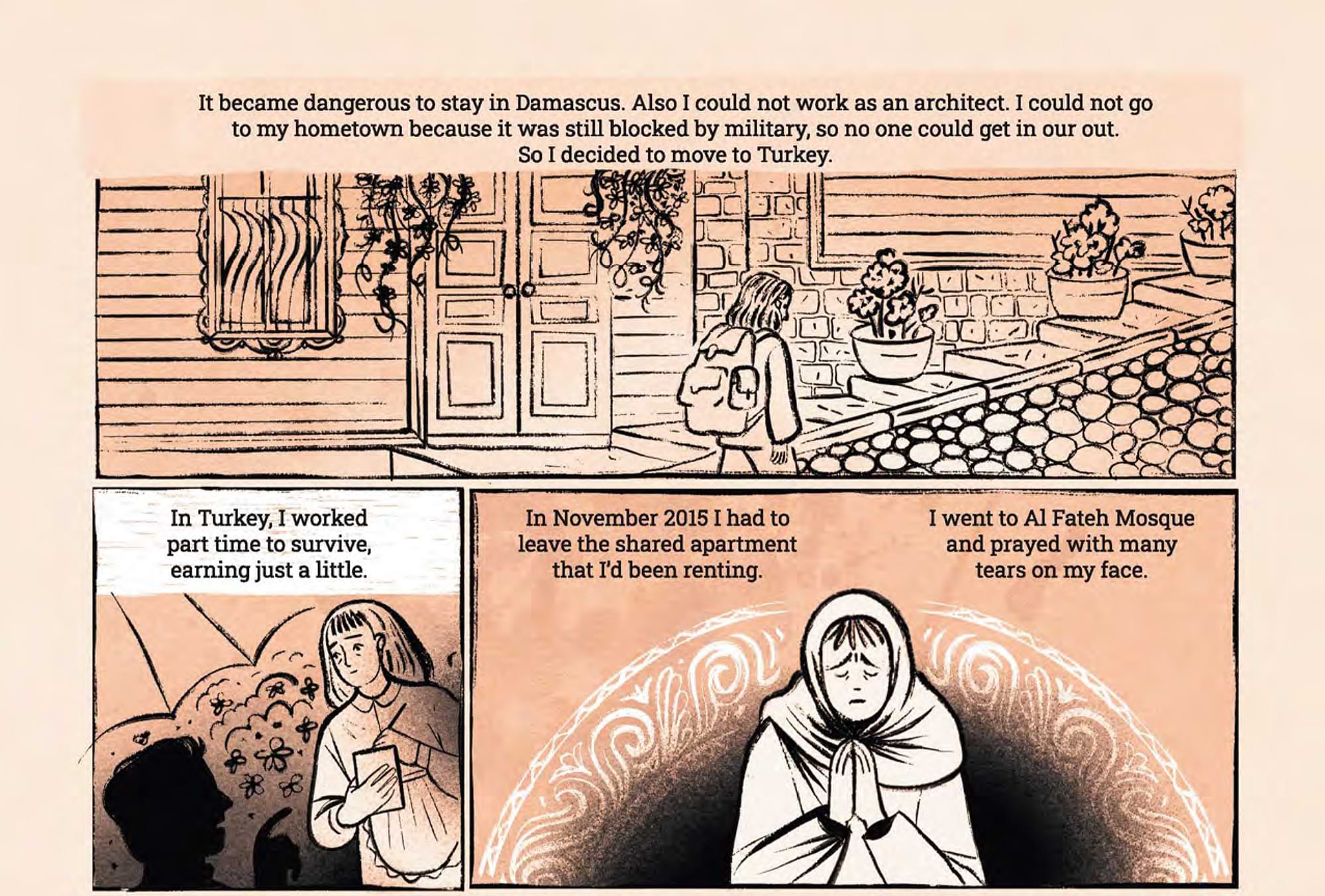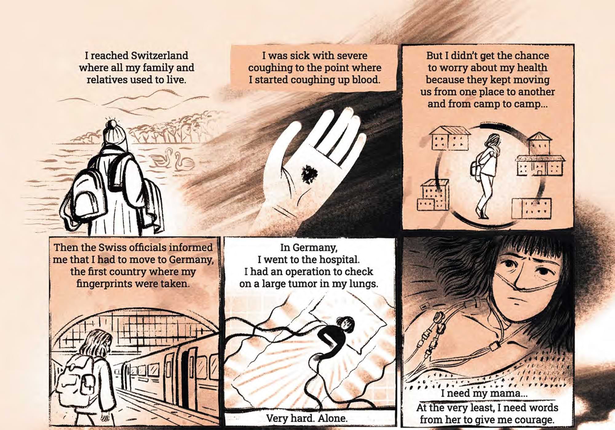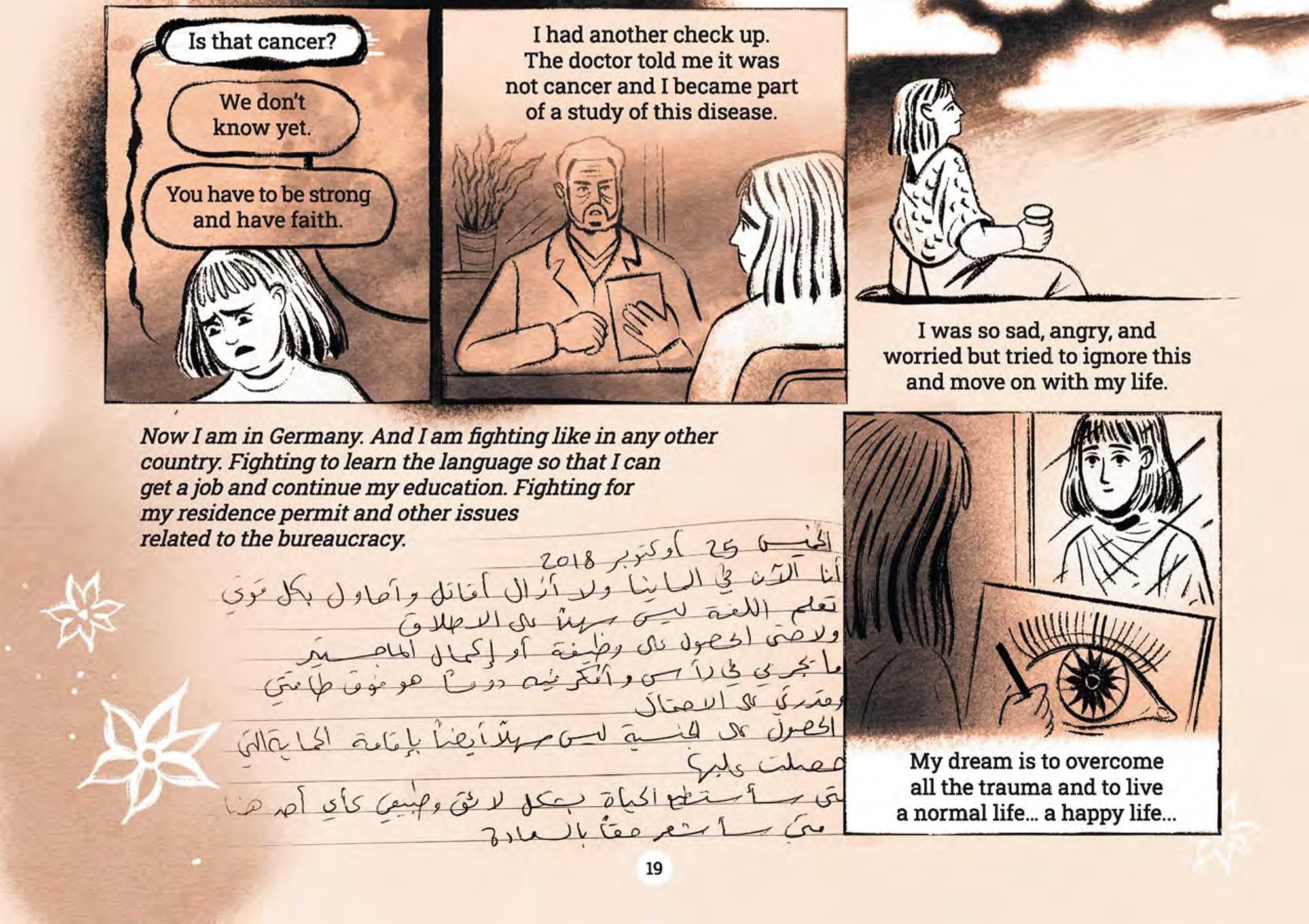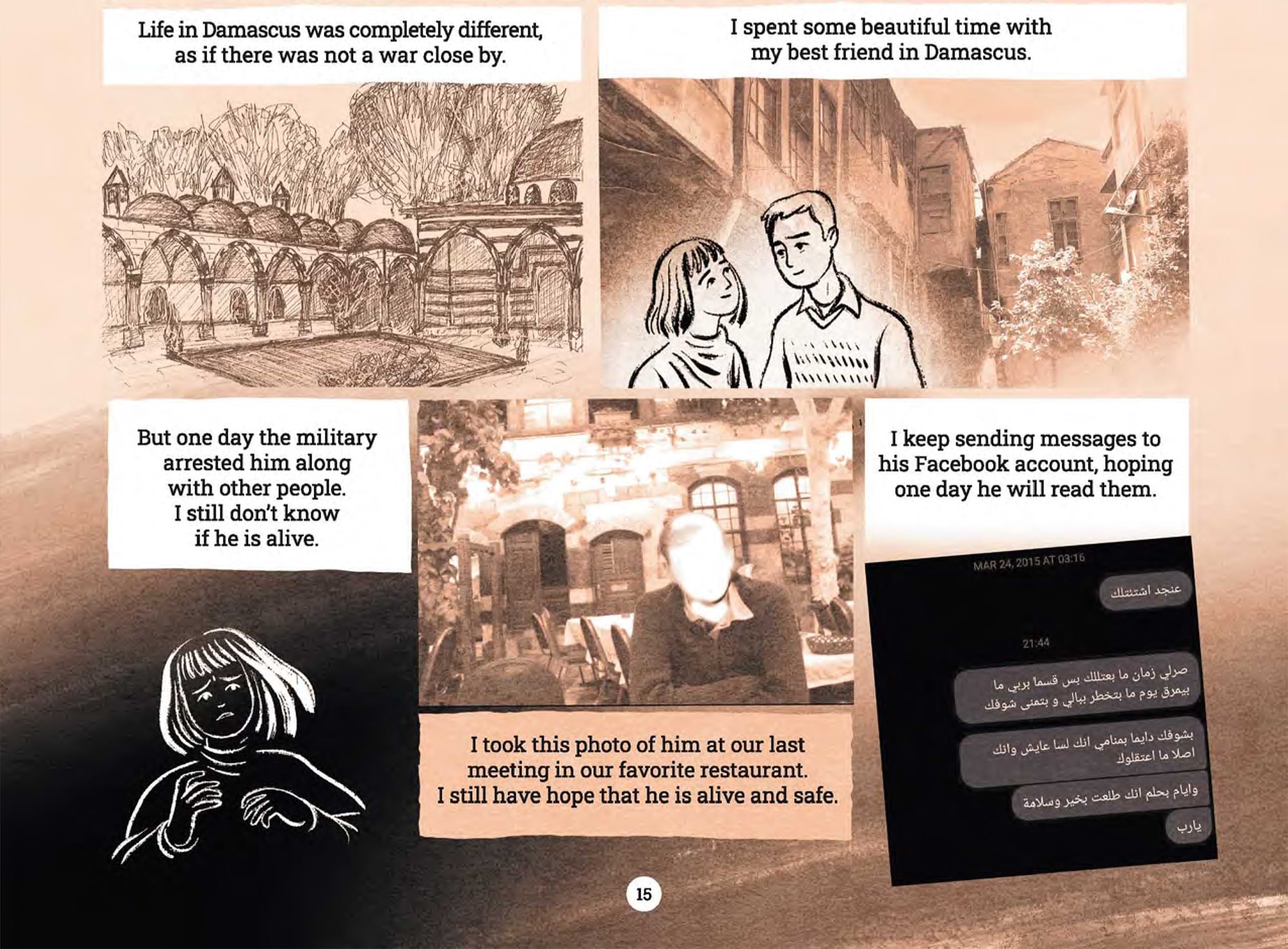 The German/Swiss NGO Libereco previously organized projects in which war histories were incorporated into comics and graphic narratives. The latest project is Scars of Strength. In this project, 14 young people from Ukraine, Iran, Iraq, Syria, and Afghanistan shared their war experiences. This was done as an oral history project called "To tell OUR stories: youth memories on refuge and resilience" Due to the topicality of recent affairs in Syria, we chose to publish My Jasmine Diary. It is an eyewitness story by the Syrian Inanna, about a chemical attack during the first phase of the fight against the Assad regime. The illustrations are made by the Ukrainian artist Sofiia Runova.