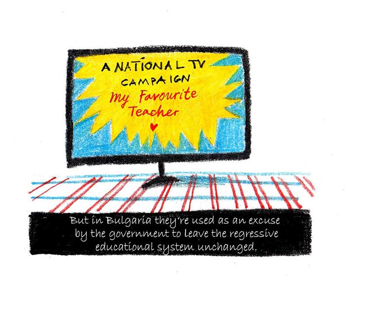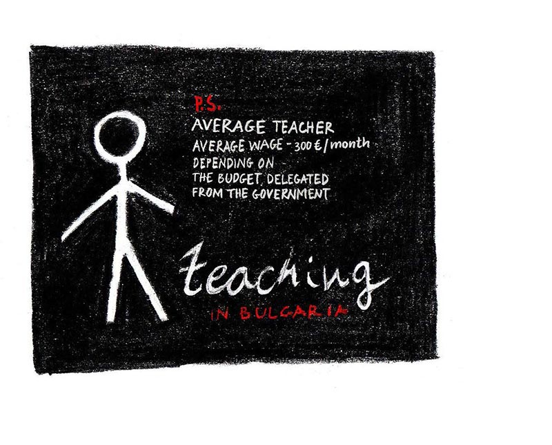 'Teaching in Bulgaria’ is a story based on several conversations with teachers of different ages in Bulgaria who are fighting against a very conservative educational system on a daily basis. By working overtime, they’re trying to change the way students and parents perceive school and its purpose.