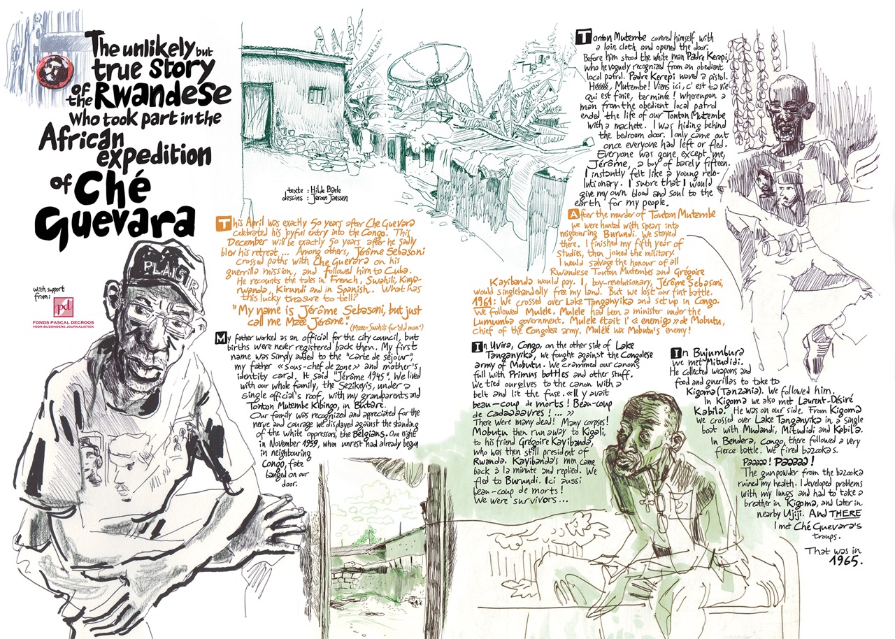 Jeroen Janssen illustrated the story of the Rwandese Jérôme Sebasoni, who joined the expedition of Che Guevara in Africa. Hilde Baele wrote the text. This is the first publication of the story in English. Tui Clark translated it.