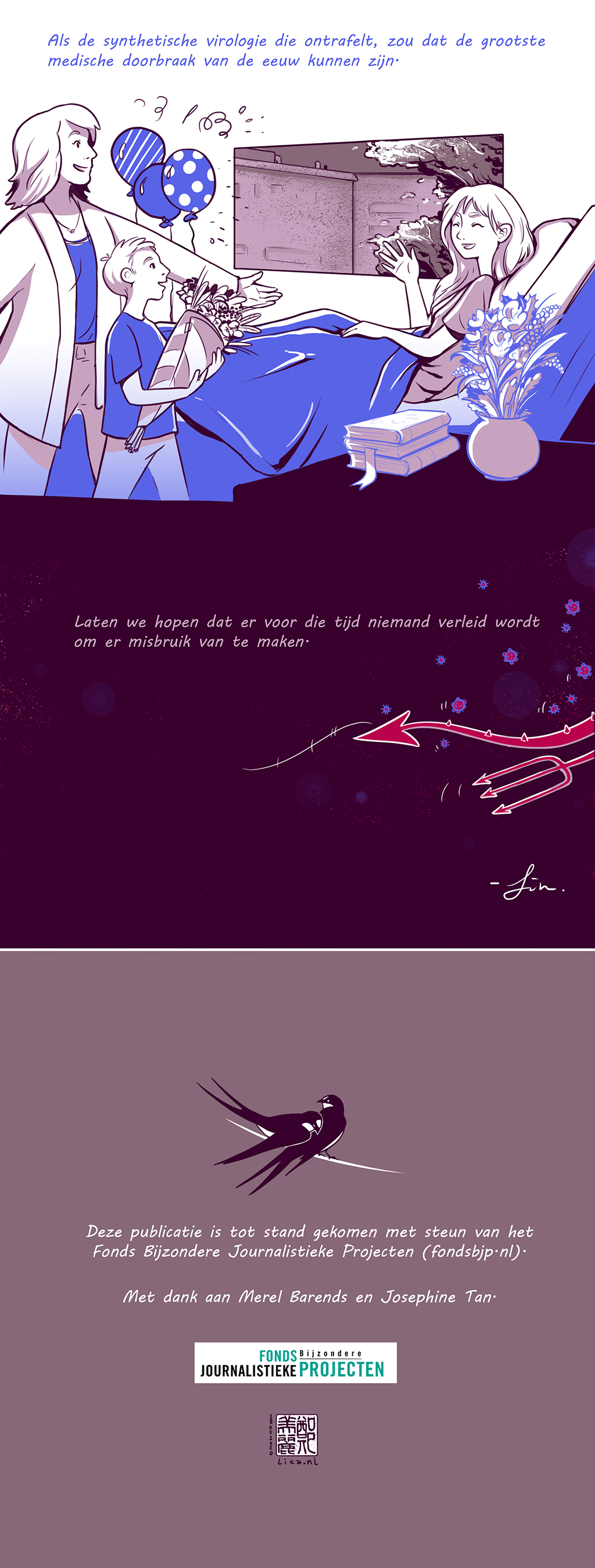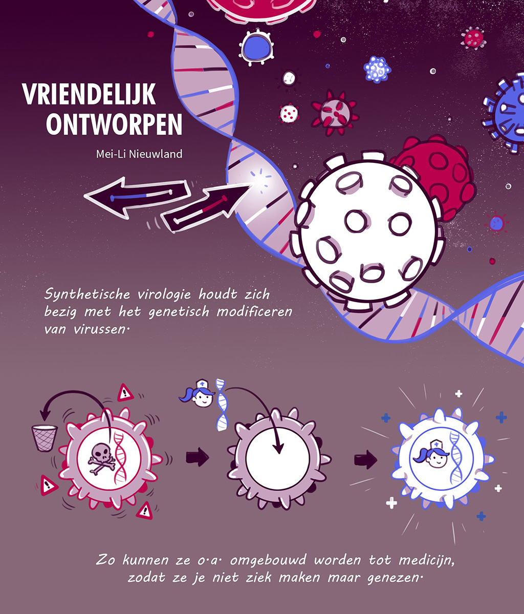 Om antwoorden te vinden worstelde Mei-Li Nieuwland door wetenschappelijke publicaties en nieuwsberichten, keek ze met grote ogen naar presentaties van optimistische farmaceutische entrepreneurs, en vroeg ze haar nuchtere vriendin, een biochemicus, de oren van het hoofd. Het resultaat is een verhaal dat in vogelvlucht een introductie biedt van de synthetische virologie.