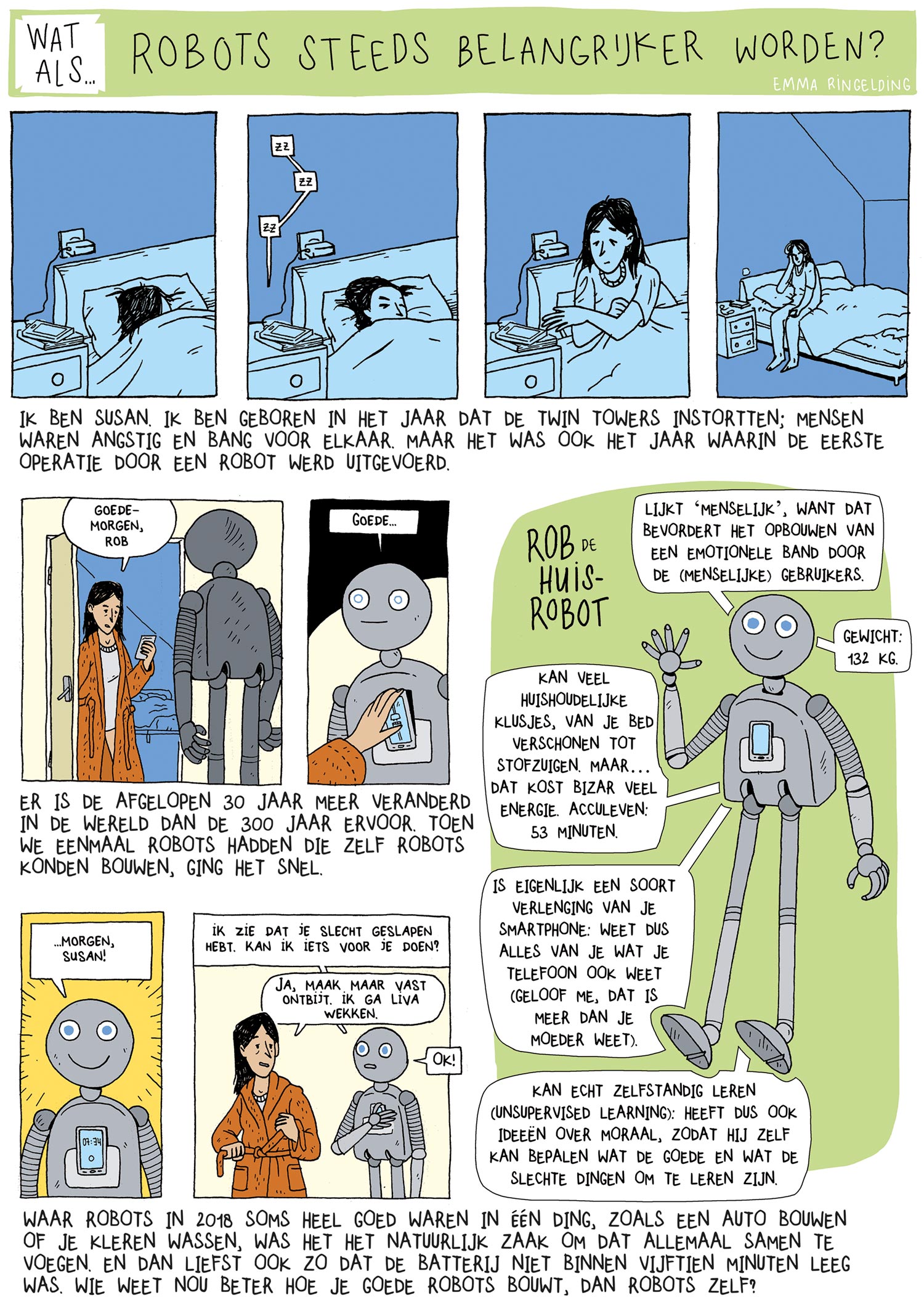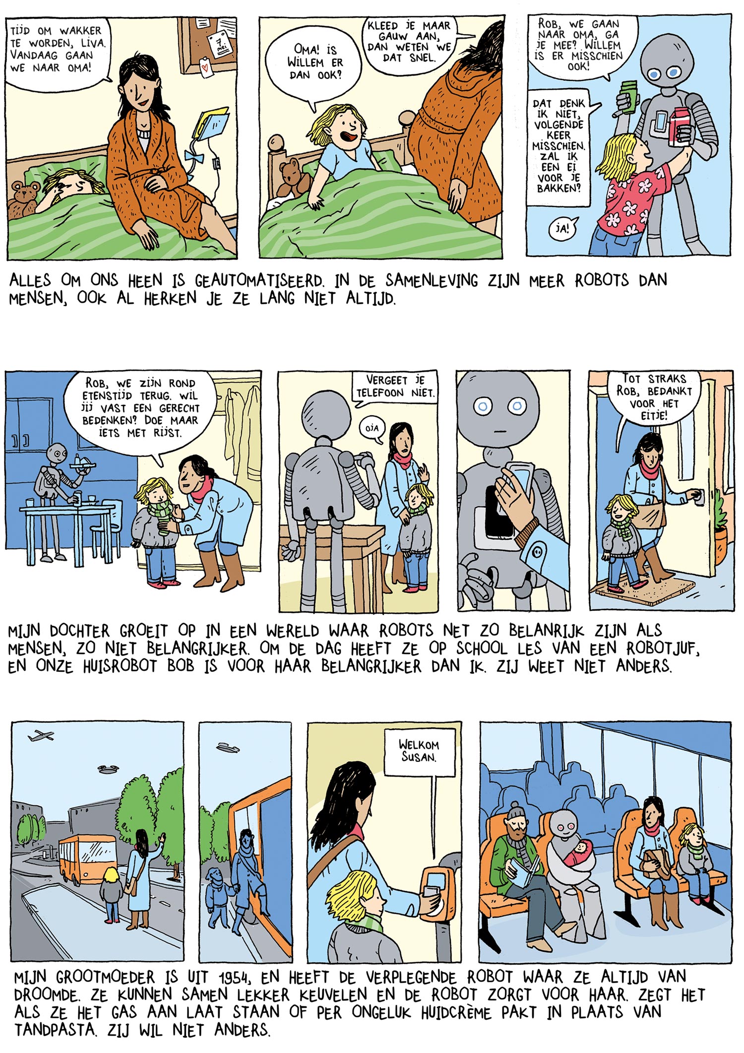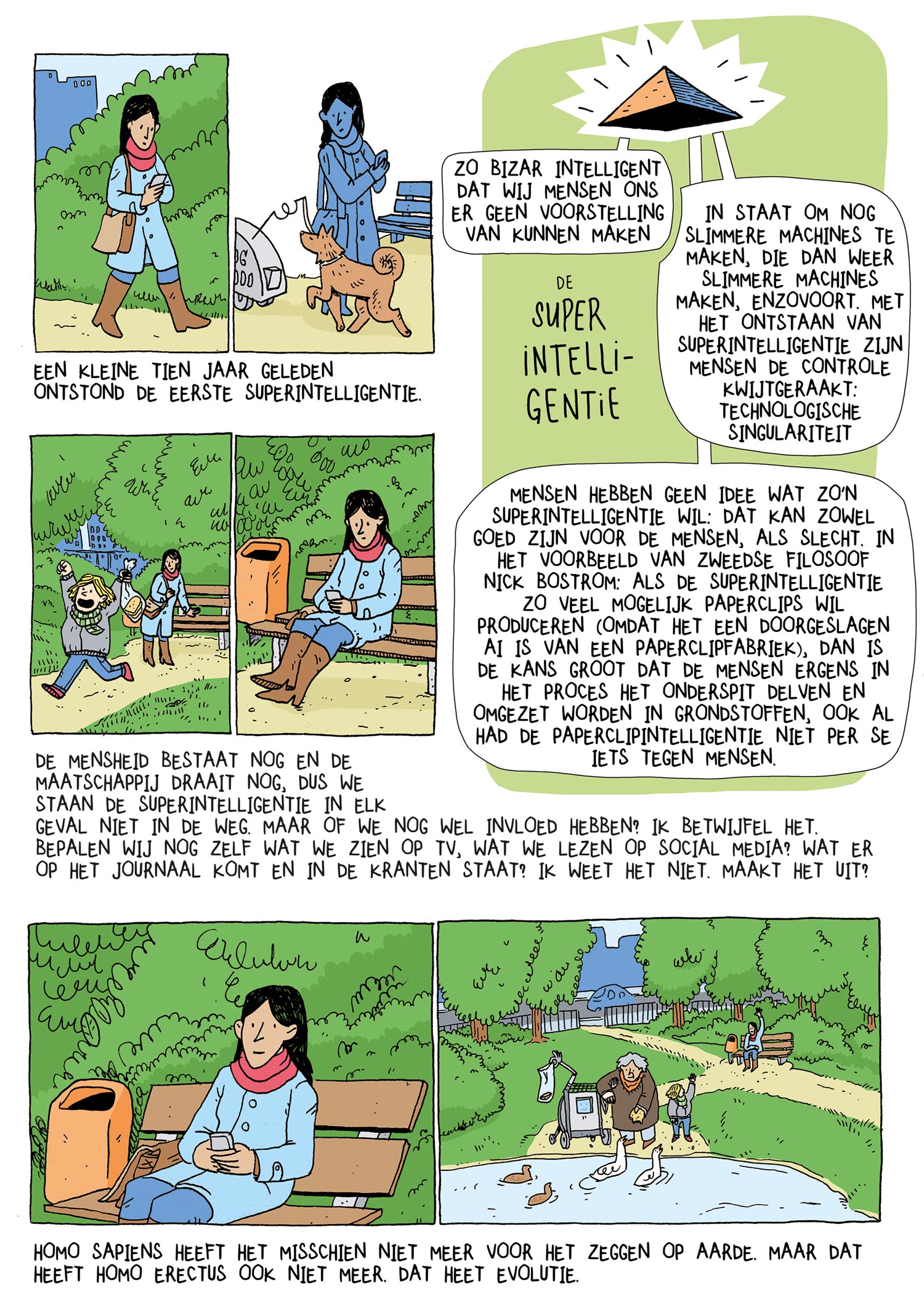 Developments in medical science, in technology and in artificial intelligence, have come to a point where there is no turning back. Soon there will be technological singularity and human intervention will be impossible. The parallels with Mary Shelley’s novel The Monster of Frankenstein are distressing: man created a monster that doesn’t know love, that he cannot control. Is it really that bad? Drawing the Times made an educational program for students in the last two years of secondary school. Each story treats a different subject, that suits the profile of the study program. The educational program was commissioned by Stripdagen Haarlem, a comic festival in the Netherlands that takes place from 25 of May until June 3rd. The stories are also on display at 37pk, platform for the arts in Haarlem. This story is made by Emma Ringelding for students with a Nature and Technology profile.